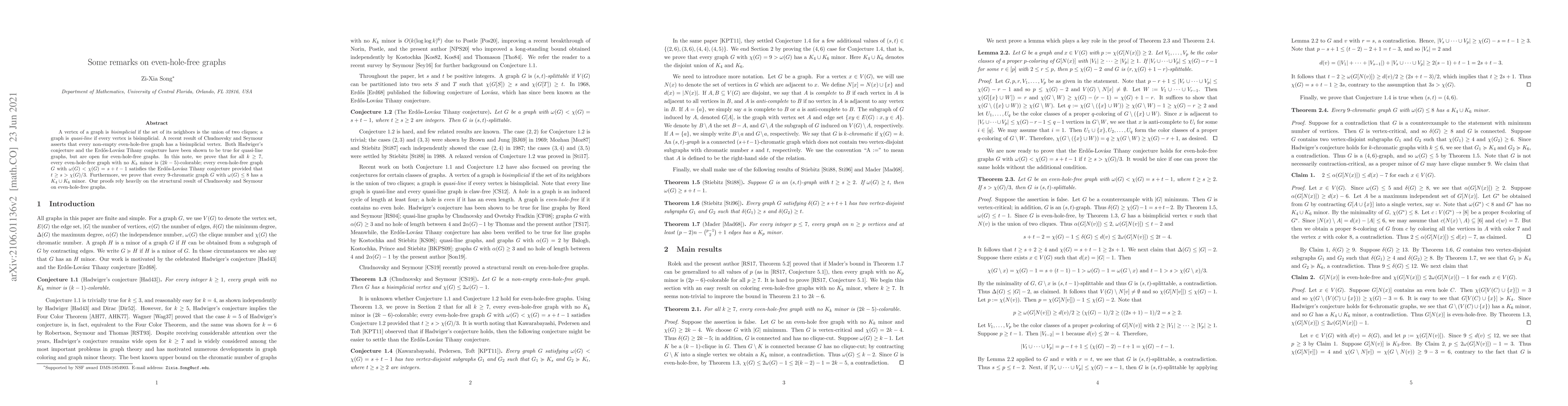 The findings contribute to the understanding of graph coloring and minor theory, impacting conjectures like Hadwiger's and Erdős-Lovász Tihany, which remain open for even-hole-free graphs.