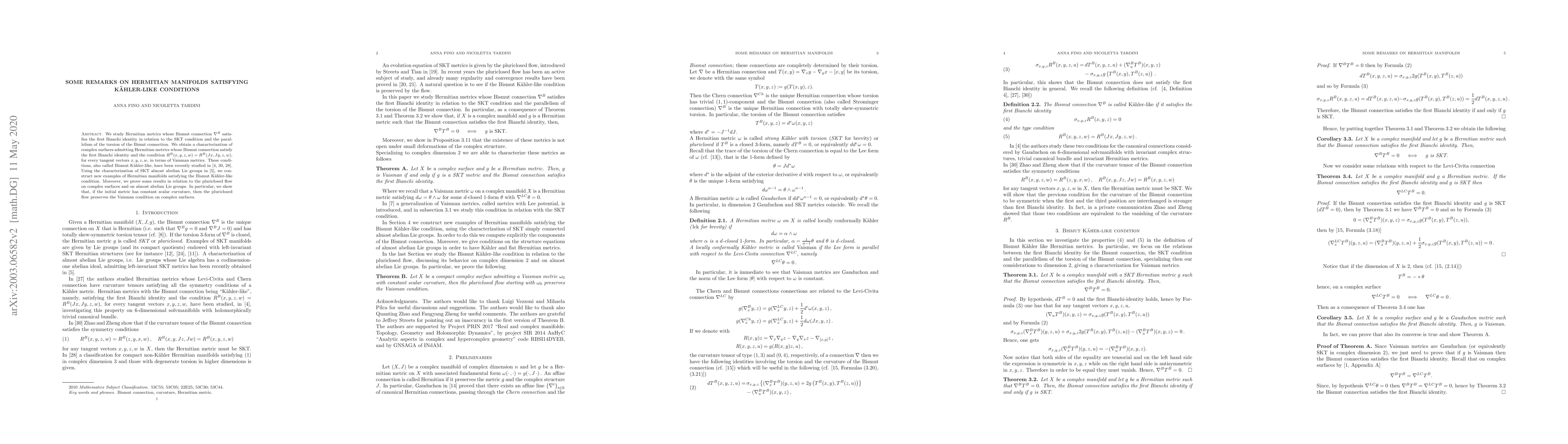 We study Hermitian metrics whose Bismut connection $\nabla^B$ satisfies the first Bianchi identity in relation to the SKT condition and the parallelism of the torsion of the Bimut connection. We obtain a characterization of complex surfaces admitting Hermitian metrics whose Bismut connection satisfy the first Bianchi identity and the condition $R^B(x,y,z,w)=R^B(Jx,Jy,z,w)$, for every tangent vectors $x,y,z,w$, in terms of Vaisman metrics. These conditions, also called Bismut K\"ahler-like, have been recently studied in [D. Angella, A. Otal, L. Ugarte, R. Villacampa, On Gauduchon connections with K\"ahler-like curvature, to appear in Commun. Anal. Geom., arXiv:1809.02632 [math.DG]], [Q. Zhao, F. Zheng, Strominger connection and pluriclosed metrics, arXiv:1904.06604 [math.DG]], [S. T. Yau, Q. Zhao, F. Zheng, On Strominger K\"ahler-like manifolds with degenerate torsion, arXiv:1908.05322 [math.DG]]. Using the characterization of SKT almost abelian Lie groups in [R. M. Arroyo, R. Lafuente, The long-time behavior of the homogeneous pluriclosed flow, Proc. London Math. Soc. (3), 119, (2019), 266-289], we construct new examples of Hermitian manifolds satisfying the Bismut K\"ahler-like condition. Moreover, we prove some results in relation to the pluriclosed flow on complex surfaces and on almost abelian Lie groups. In particular, we show that, if the initial metric has constant scalar curvature, then the pluriclosed flow preserves the Vaisman condition on complex surfaces.