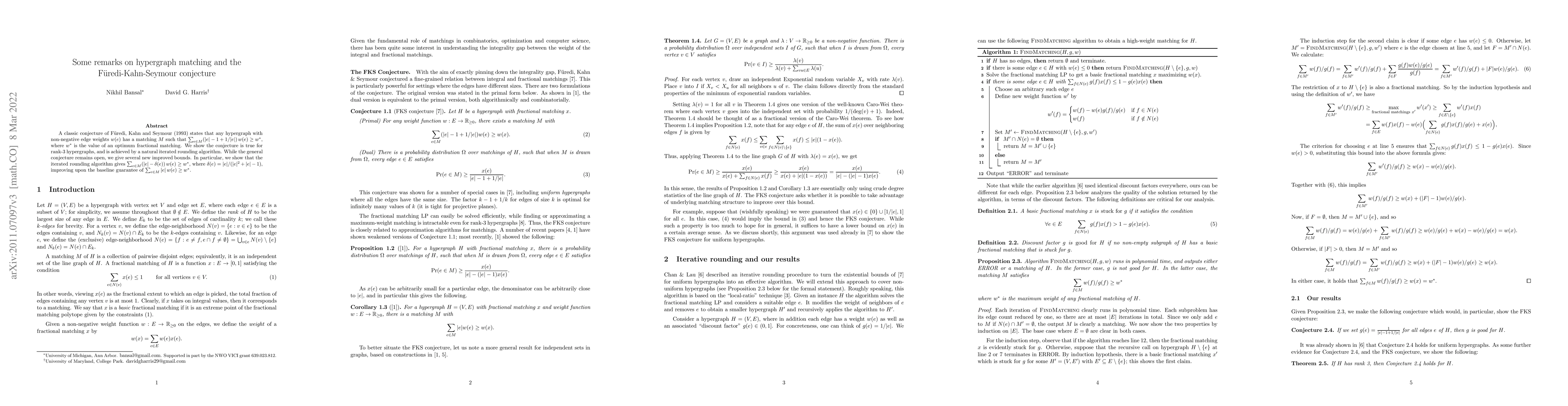 This paper confirms the F\"{u}redi-Kahn-Seymour conjecture for rank-3 hypergraphs using an iterated rounding algorithm, and provides improved bounds for the general case, enhancing the guarantee of matching weight over the optimum fractional matching.