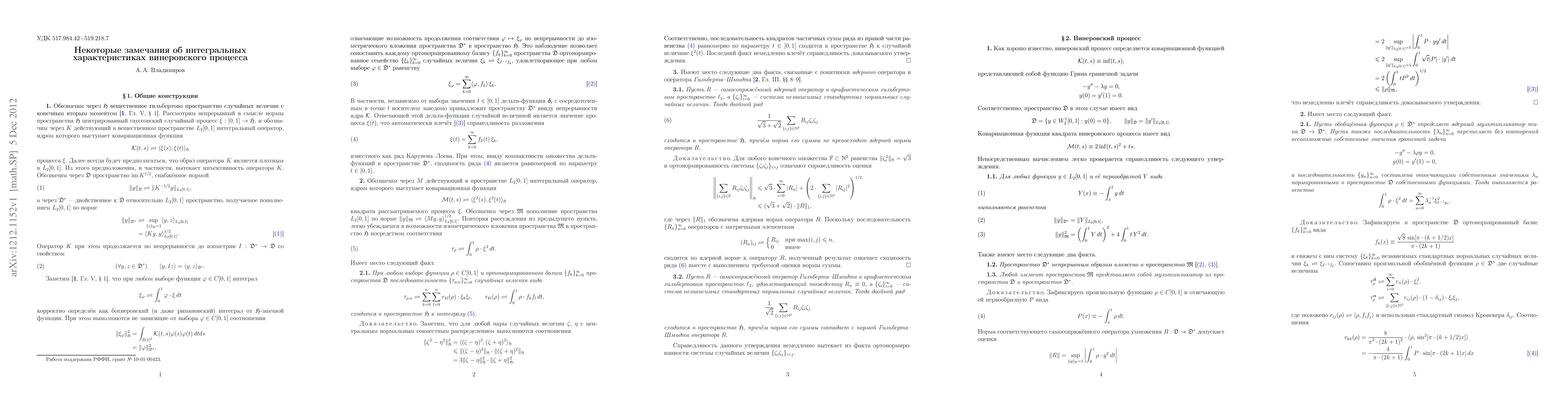 We consider integrals $\tau_{\rho}=\int_0^1\rho\xi^2\,dx$, where $\xi$ is Wiener process and $\rho$ is generalized function from some class of multipliers. In the case when multiplier $\rho$ belongs to the trace-class, it is shown that $\tau_{\rho}$ has $\chi^2$-distribution (or analogous). An example of multiplier $\rho$ not belonging to the trace-class is constructed.