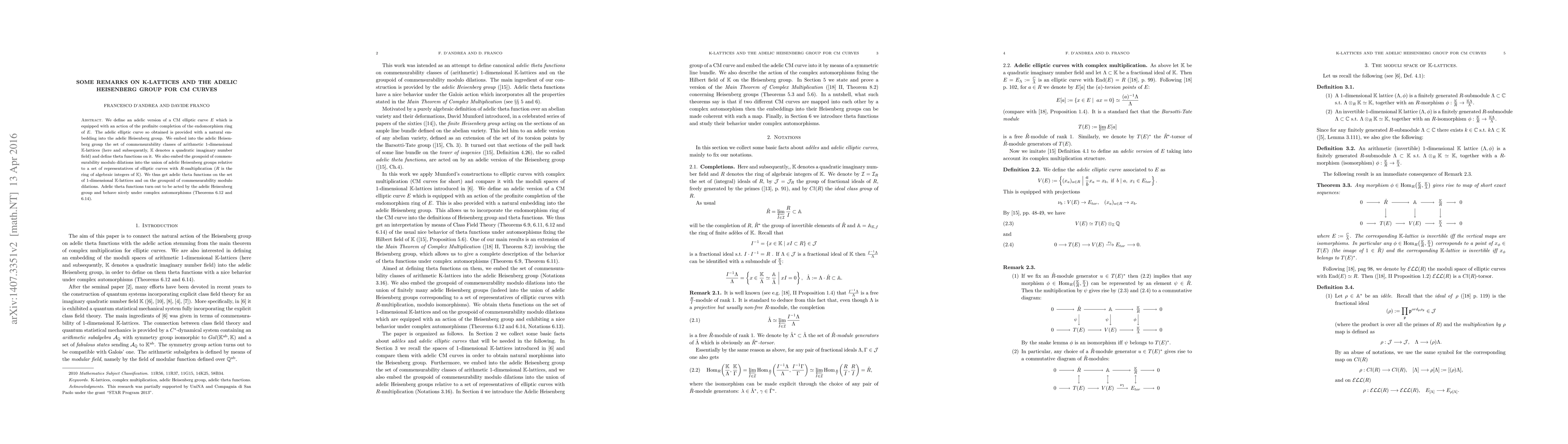 We define an adelic version of a CM elliptic curve $E$ which is equipped with an action of the profinite completion of the endomorphism ring of $E$. The adelic elliptic curve so obtained is provided with a natural embedding into the adelic Heisenberg group. We embed into the adelic Heisenberg group the set of commensurability classes of arithmetic $1$-dimensional $\mathbb{K}$-lattices (here and subsequently, $\mathbb{K}$ denotes a quadratic imaginary number field) and define theta functions on it. We also embed the groupoid of commensurability modulo dilations into the union of adelic Heisenberg groups relative to a set of representatives of elliptic curves with $R$-multiplication ($R$ is the ring of algebraic integers of $\mathbb{K}$). We thus get adelic theta functions on the set of $1$-dimensional $\mathbb{K}$-lattices and on the groupoid of commensurability modulo dilations. Adelic theta functions turn out to be acted by the adelic Heisenberg group and behave nicely under complex automorphisms (Theorems 6.12 and 6.14).