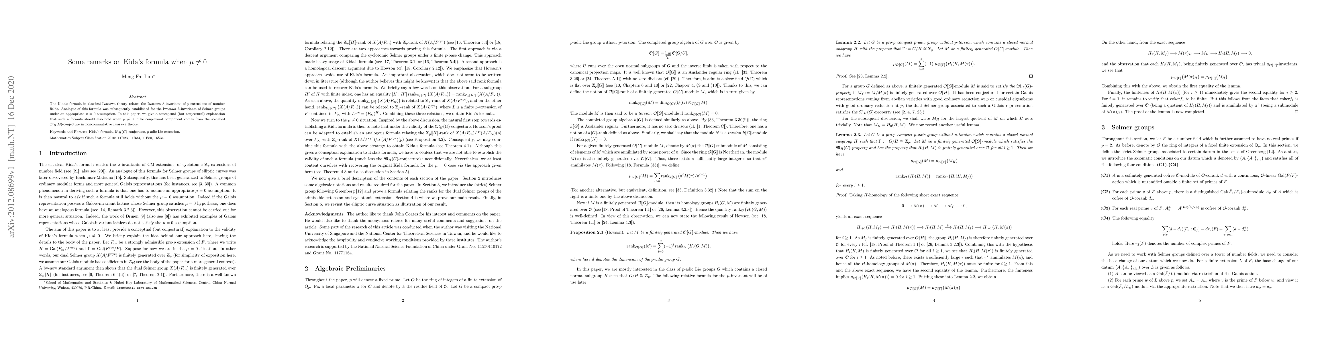 The Kida's formula in classical Iwasawa theory relates the Iwasawa $\lambda$-invariants of $p$-extensions of number fields. Analogue of this formula was subsequently established for the Iwasawa $\lambda$-invariants of Selmer groups under an appropriate $\mu=0$ assumption. In this paper, we give a conceptual (but conjectural) explanation that such a formula should also hold when $\mu\neq 0$. The conjectural component comes from the so-called $\mathfrak{M}_H(G)$-conjecture in noncommutative Iwasawa theory.