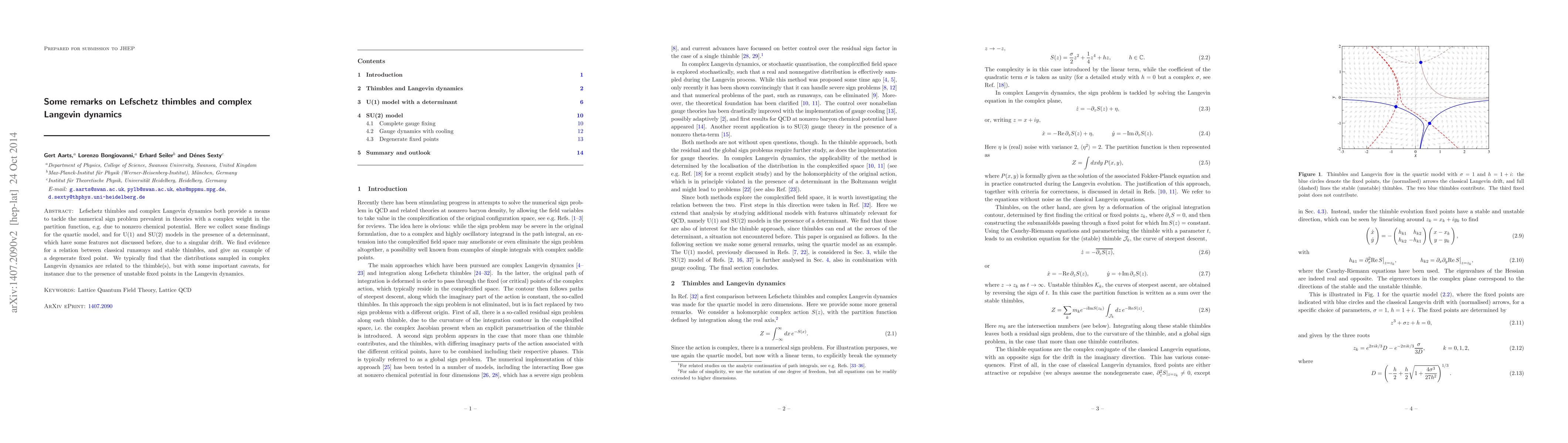Lefschetz thimbles and complex Langevin dynamics both provide a means to tackle the numerical sign problem prevalent in theories with a complex weight in the partition function, e.g. due to nonzero chemical potential. Here we collect some findings for the quartic model, and for U(1) and SU(2) models in the presence of a determinant, which have some features not discussed before, due to a singular drift. We find evidence for a relation between classical runaways and stable thimbles, and give an example of a degenerate fixed point. We typically find that the distributions sampled in complex Langevin dynamics are related to the thimble(s), but with some important caveats, for instance due to the presence of unstable fixed points in the Langevin dynamics.