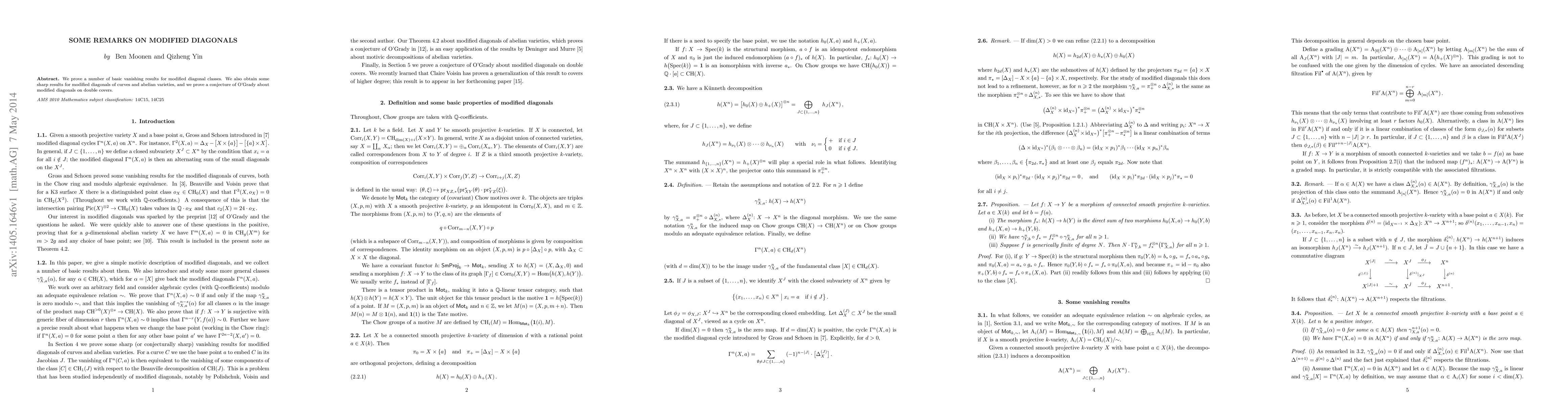 Summary: This paper establishes fundamental vanishing theorems for modified diagonal classes and provides precise results for modified diagonals on curves and abelian varieties, ultimately confirming a conjecture of O'Grady regarding modified diagonals in double covers.