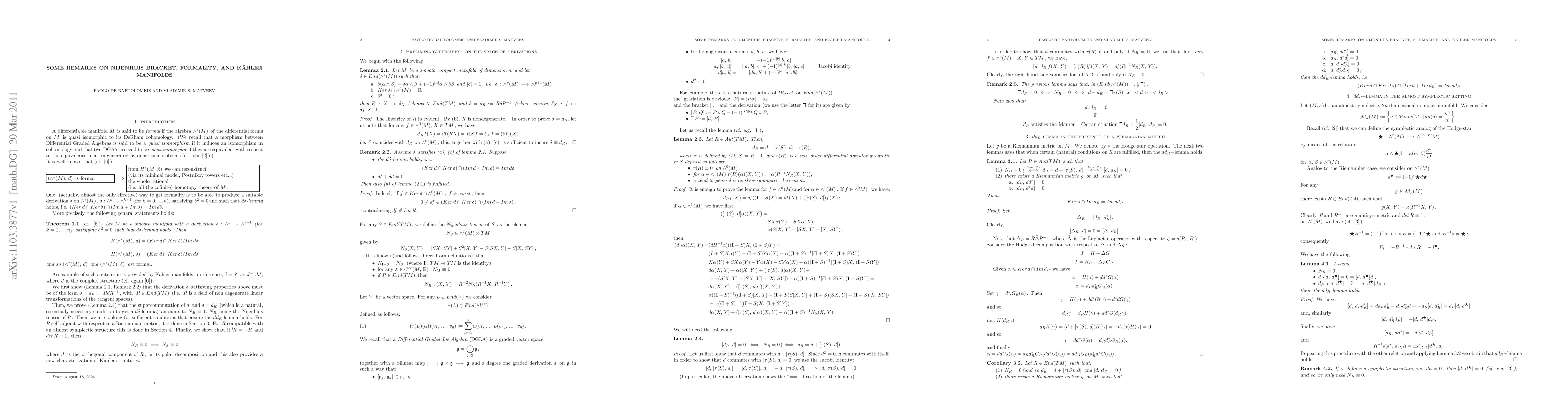 One (actually, almost the only effective) way to prove formality of a differentiable manifold is to be able to produce a suitable derivation $\delta$ such that $d\delta$-lemma holds. We first show that such derivation $\delta$ generates a (1,1)-tensor field (we denote it by $R$). Then, we show that the supercommutation of $d$ and $\delta$ (which is a natural, essentially necessary condition to get a $d\delta$-lemma) is equivalent to vanishing of the Nijenhujis torsion of $R$. Then, we are looking for sufficient conditions that ensure the $d\delta$-lemma holds: we consider the cases when $R$ is self adjoint with respect to a Riemannian metric or compatible with an almost symplectic structure. Finally, we show that if $R$ is scew-symmetric with respect to a Riemannian metric, has constant determinant, and if its Nijenhujis torsion vanishes, then the orthogonal component of $R$ in its polar decomposition is a complex structure compatible with the metric, which gives us a new characterization of K\"ahler structures