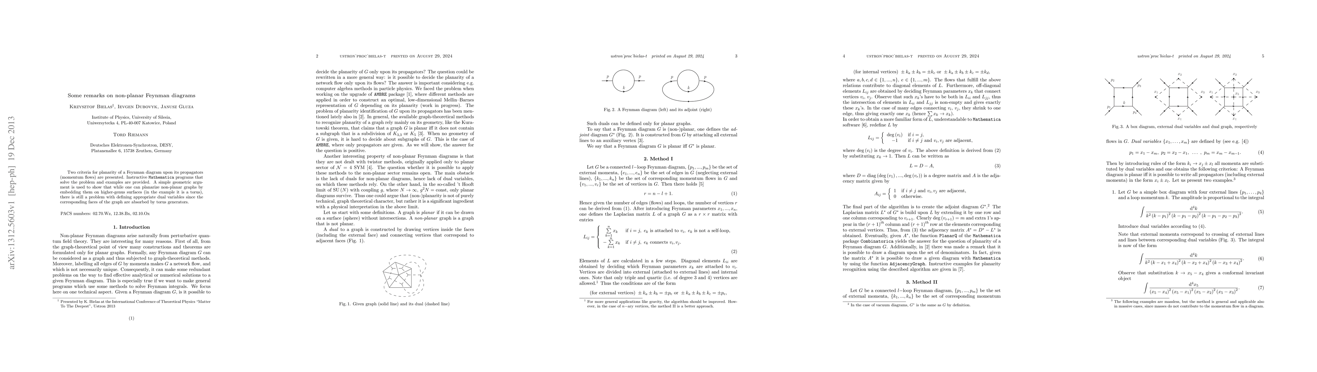 Two criteria for planarity of a Feynman diagram upon its propagators (momentum flows) are presented. Instructive Mathematica programs that solve the problem and examples are provided. A simple geometric argument is used to show that while one can planarize non-planar graphs by embedding them on higher-genus surfaces (in the example it is a torus), there is still a problem with defining appropriate dual variables since the corresponding faces of the graph are absorbed by torus generators.