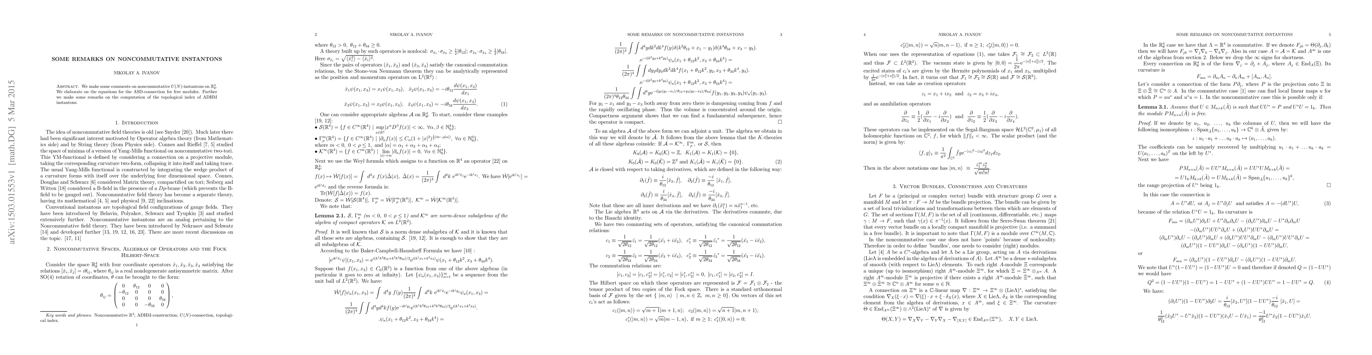 This paper discusses noncommutative $U(N)$-instantons in $\mathbb{R}^4_{\theta}$ and explores the equations for the ASD-connection in free modules. It also includes remarks on calculating the topological index of ADHM instantons.