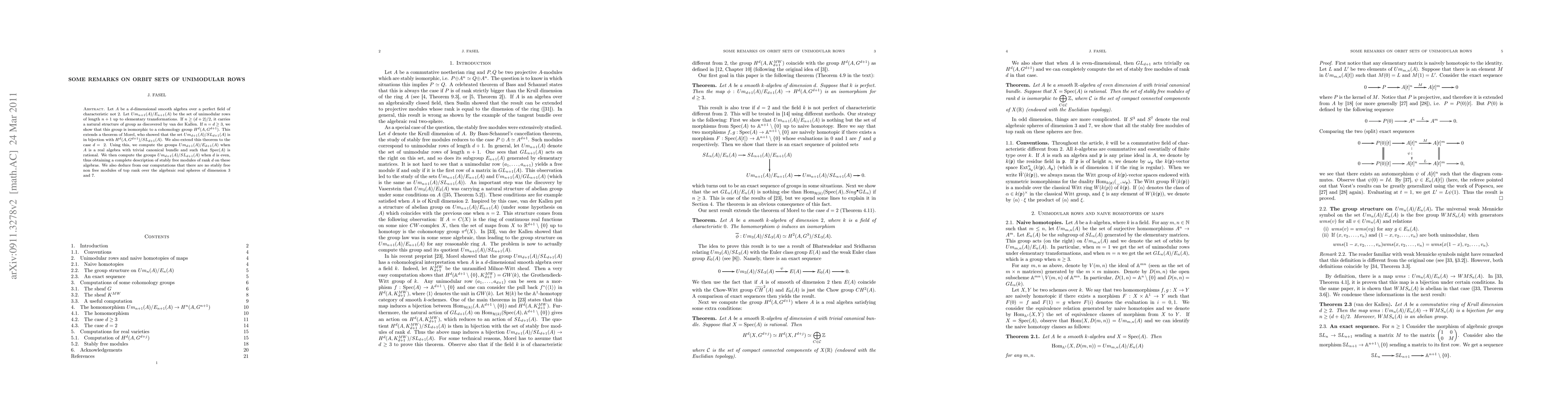 Summary: This paper provides a cohomological interpretation of orbit sets of unimodular rows of length d+1 over smooth algebras of Krull dimension d, linking algebraic structures with cohomological properties.