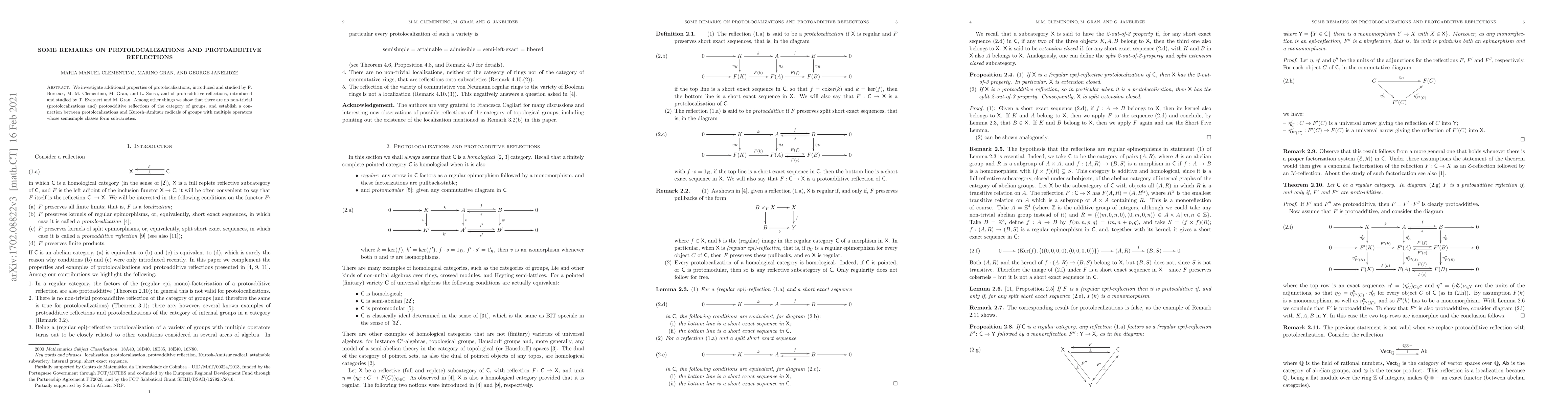 This paper explores the properties of protolocalizations and protoadditive reflections, demonstrating that there are no non-trivial protolocalizations or protoadditive reflections in the category of groups. It also establishes a link between protolocalizations and Kurosh-Amitsur radicals in groups with multiple operators.