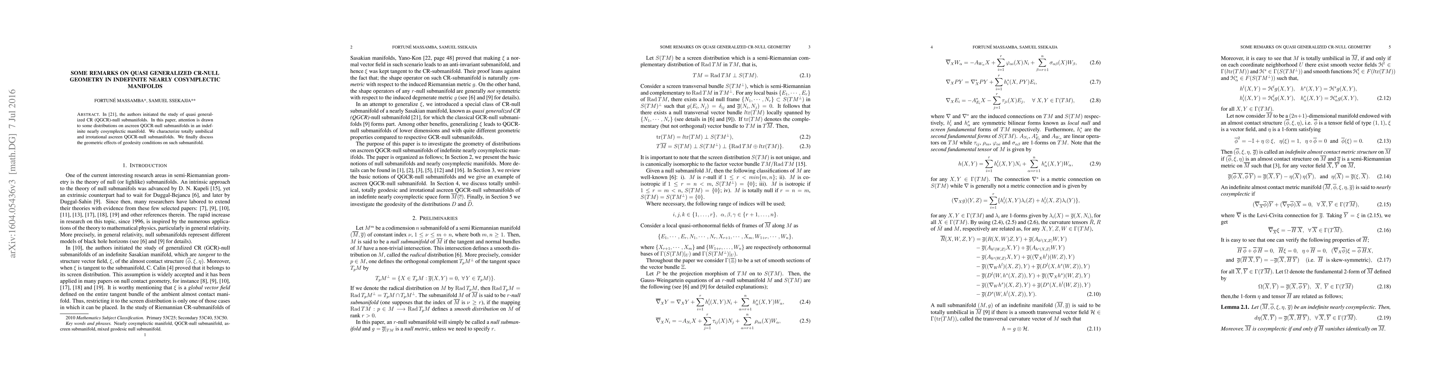 This paper explores distributions on ascreen quasi generalized CR-null submanifolds in an indefinite nearly cosymplectic manifold, characterizing totally umbilical and irrotational such submanifolds and discussing the geometric effects of geodesity conditions.