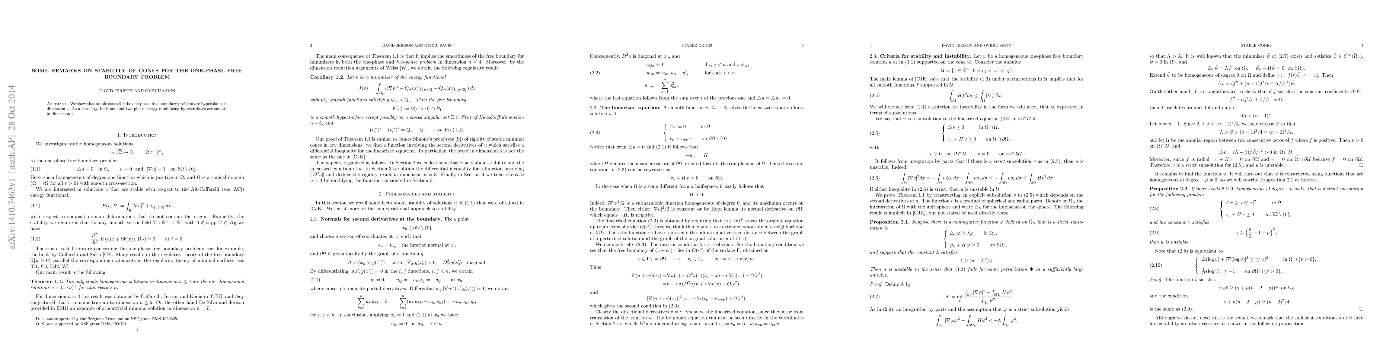 Research shows that stable cones in a specific math problem are hyperplanes in dimension 4, with implications for smooth energy-minimizing surfaces.