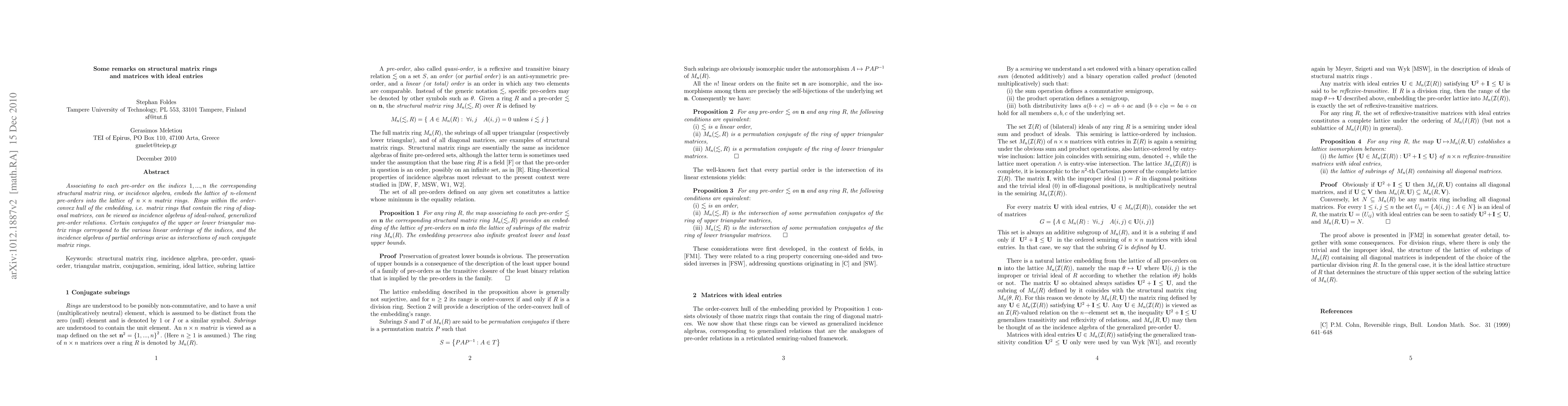 Associating to each pre-order on the indices 1,...,n the corresponding structural matrix ring, or incidence algebra, embeds the lattice of n-element pre-orders into the lattice of n x n matrix rings. Rings within the order-convex hull of the embedding, i.e. matrix rings that contain the ring of diagonal matrices, can be viewed as incidence algebras of ideal-valued, generalized pre-order relations. Certain conjugates of the upper or lower triangular matrix rings correspond to the various linear orderings of the indices, and the incidence algebras of partial orderings arise as intersections of such conjugate matrix rings.