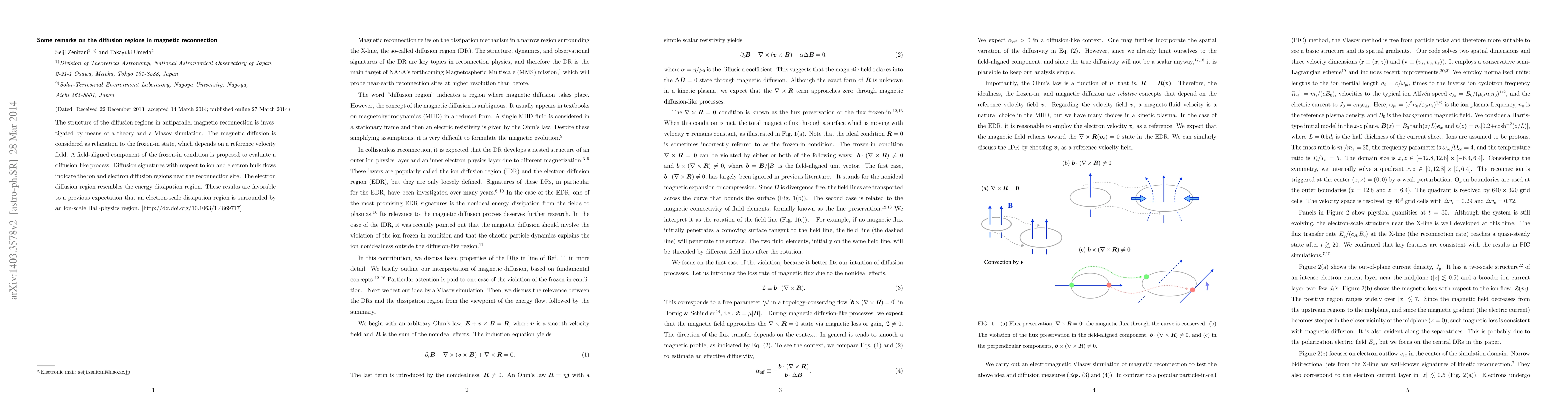 This paper investigates the structure of diffusion regions in magnetic reconnection using theory and Vlasov simulations, proposing a field-aligned component to evaluate magnetic diffusion. It identifies distinct ion and electron diffusion regions near the reconnection site, with the electron region resembling an energy dissipation area.