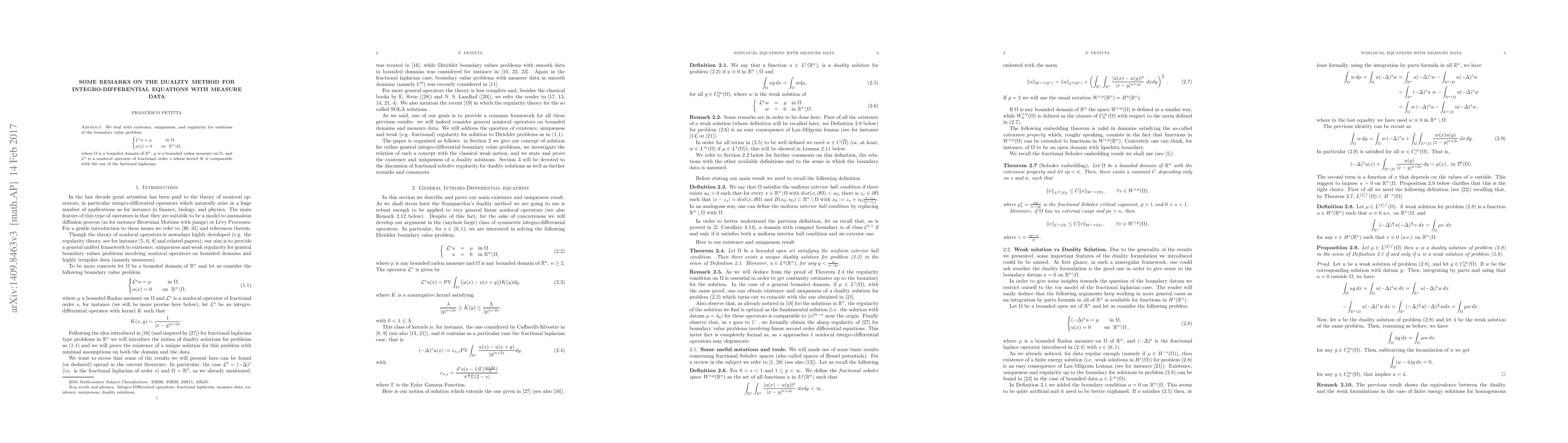 We deal with existence, uniqueness, and regularity for solutions of the boundary value problem $$ \begin{cases} {\mathcal L}^s u = \mu &\quad \text{in $\Omega$}, u(x)=0 \quad &\text{on} \ \ \mathbb{R}^N\backslash\Omega, \end{cases} $$ where $\Omega$ is a bounded domain of $\mathbb{R}^N$, $\mu$ is a bounded radon measure on $\Omega$, and ${\mathcal L}^s$ is a nonlocal operator of fractional order $s$ whose kernel $K$ is comparable with the one of the factional laplacian.