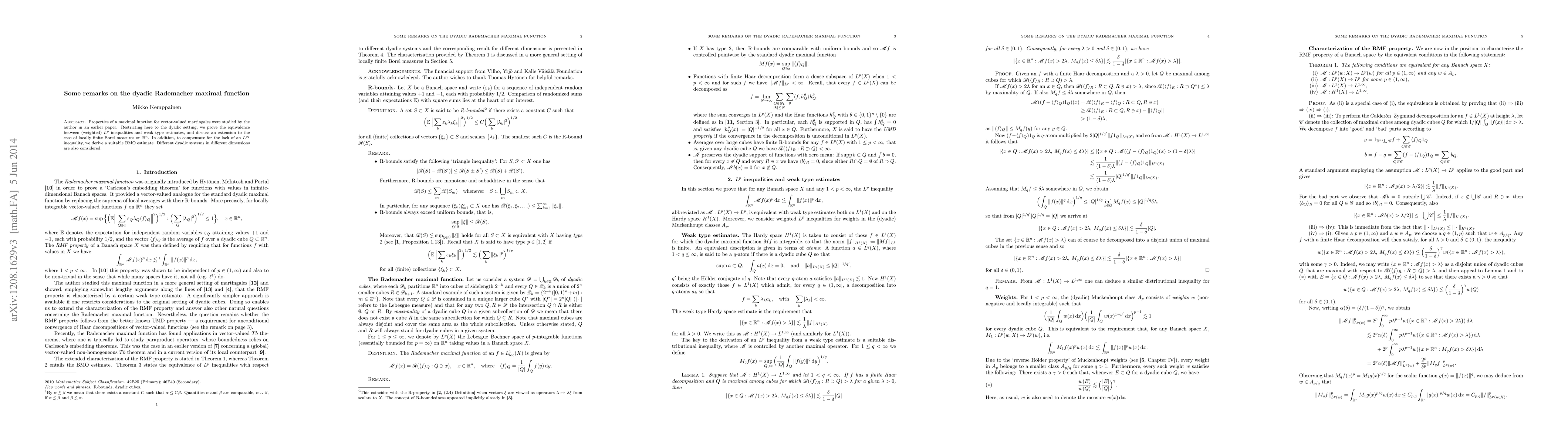 This paper investigates dyadic Rademacher maximal functions for vector-valued martingales, proving equivalences between weighted L^p inequalities and weak type estimates, and extending results to locally finite Borel measures on R^n. It also provides a BMO estimate to compensate for the absence of an L^\infty inequality.