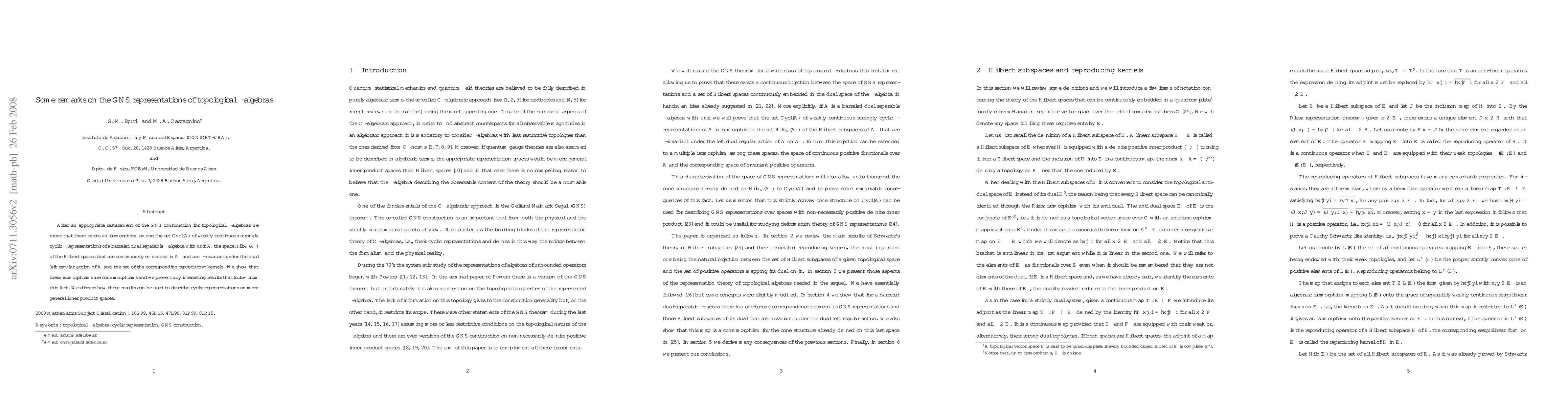 This paper restates the GNS construction for topological $^*$-algebras and proves an isomorphism between weakly continuous strongly cyclic $^*$-representations of a barreled dual-separable $^*$-algebra and the space of $^*$-invariant Hilbert spaces embedded in its dual. The study also explores the implications of these isomorphisms for cyclic representations on broader inner product spaces.