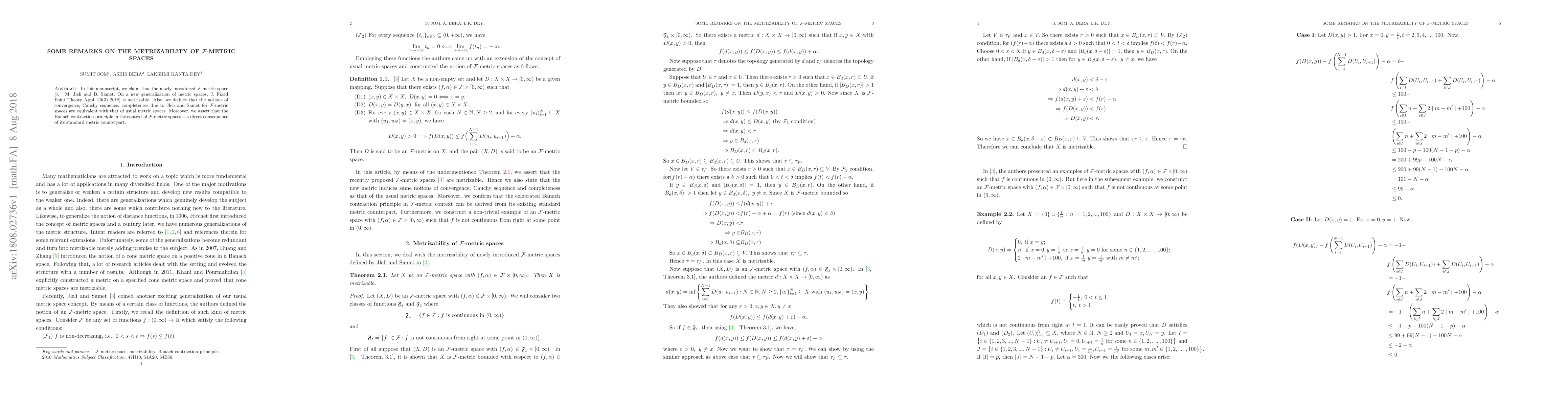 New research claims that $/mathcal{F}$-metric spaces are metrizable, with convergence and Cauchy sequence notions being equivalent to those in usual metric spaces.