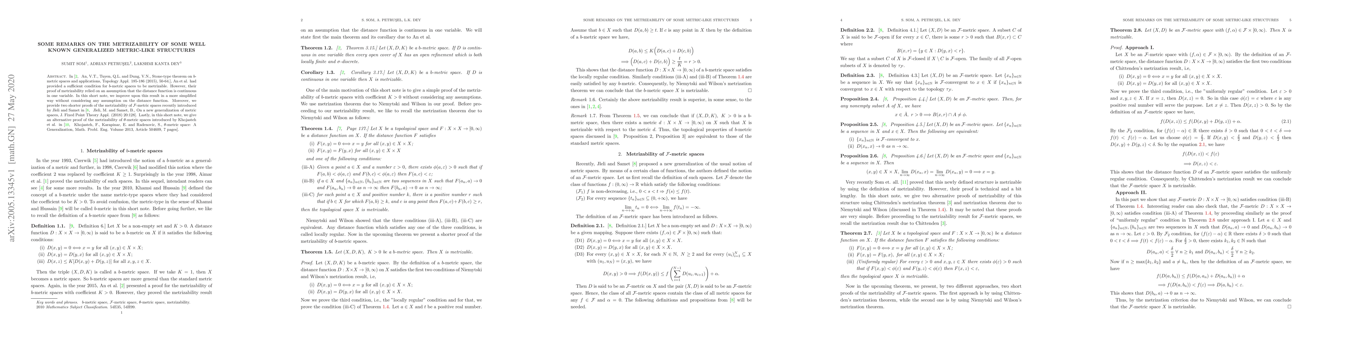 In \cite[\, An, V.T., Tuyen, Q.L. and Dung, V.N., Stone-type theorem on $b$-metric spaces and applications, Topology Appl. 185-186 (2015), 50-64.]{an}, An et al. had provided a sufficient condition for $b$-metric spaces to be metrizable. However, their proof of metrizability relied on an assumption that the distance function is continuous in one variable. In this short note, we improve upon this result in a more simplified way without considering any assumption on the distance function. Moreover, we provide two shorter proofs of the metrizability of $\mathcal{F}$-metric spaces recently introduced by Jleli and Samet in \cite[\, Jleli, M. and Samet, B., On a new generalization of metric spaces, J. Fixed Point Theory Appl. (2018) 20:128]{JS1}. Lastly, in this short note, we give an alternative proof of the metrizability of $\theta$-metric spaces introduced by Khojasteh et al. in \cite[\, Khojasteh, F., Karapinar, E. and Radenovic, S., $\theta$-metric space: A Generalization, Math. Probl. Eng. Volume 2013, Article 504609, 7 pages]{ks}.