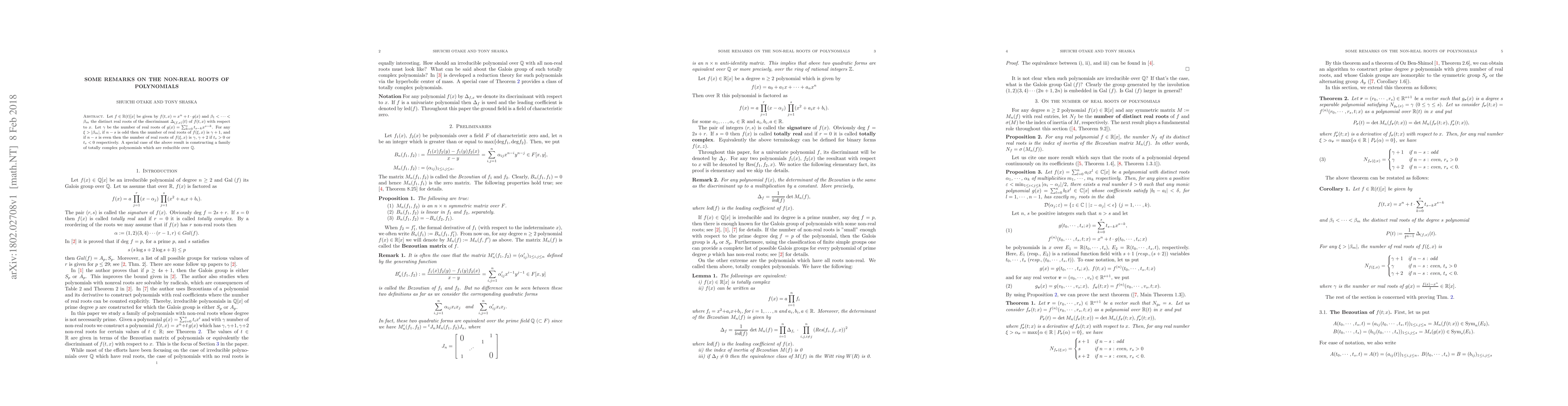 This paper examines the number of real roots of polynomials $f(t, x)$ under certain conditions. It finds that for large $\xi$, the number of real roots depends on the parity of $n-s$ and the sign of the leading coefficient of $g(x)$. It also constructs families of totally complex, reducible polynomials over $\mathbb Q$.