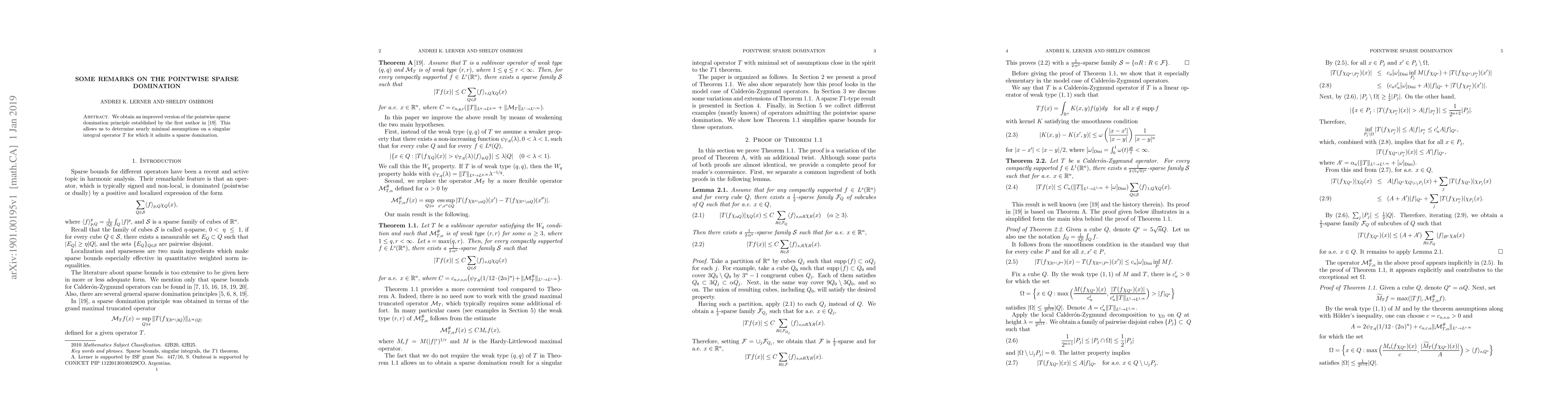 We obtain an improved version of the pointwise sparse domination principle established by the first author in [19]. This allows us to determine nearly minimal assumptions on a singular integral operator $T$ for which it admits a sparse domination.