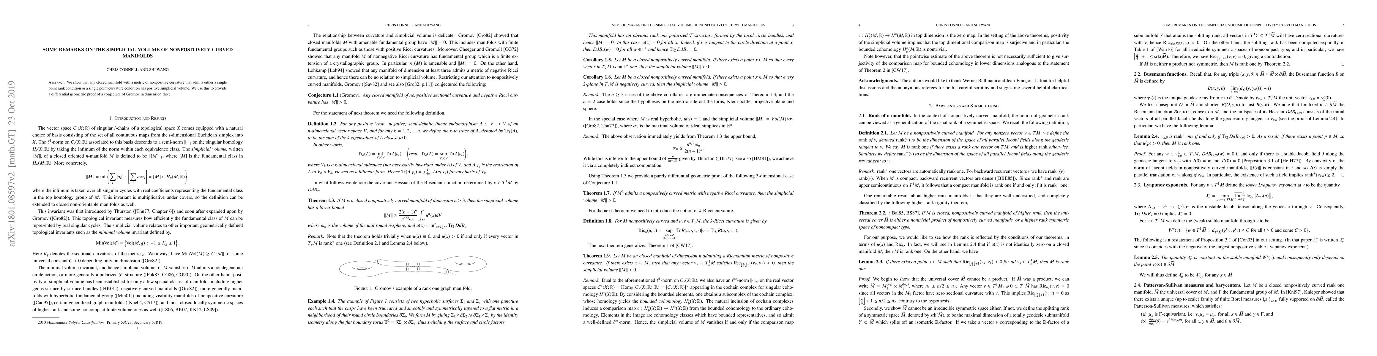 We show that any closed manifold with a metric of nonpositive curvature that admits either a single point rank condition or a single point curvature condition has positive simplicial volume. We use this to provide a differential geometric proof of a conjecture of Gromov in dimension three.