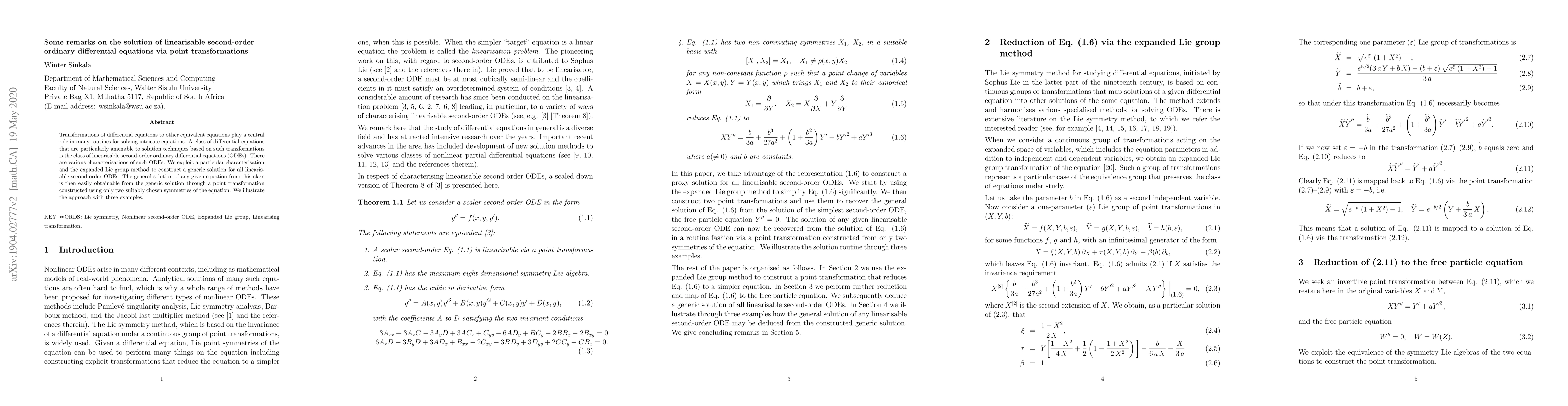 This paper explores the solution of linearisable second-order ordinary differential equations (ODEs) using point transformations and the expanded Lie group method. It constructs a generic solution for all such ODEs and demonstrates how specific solutions can be derived from this generic solution via point transformations based on two chosen symmetries.
