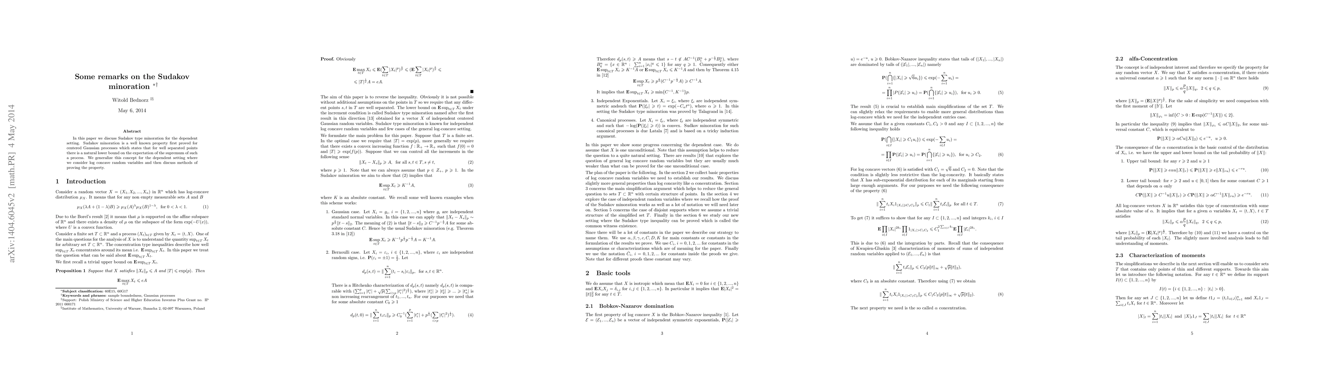 In this paper we discuss Sudakov type minoration for the dependent setting. Sudakov minoration is a well known property first proved for centered Gaussian processes which states that for well separated points there is a natural lower bound on the expectation of the supremum of such a process. We generalize this concept for the dependent setting where we consider log concave random variables and then discuss methods of proving the property.