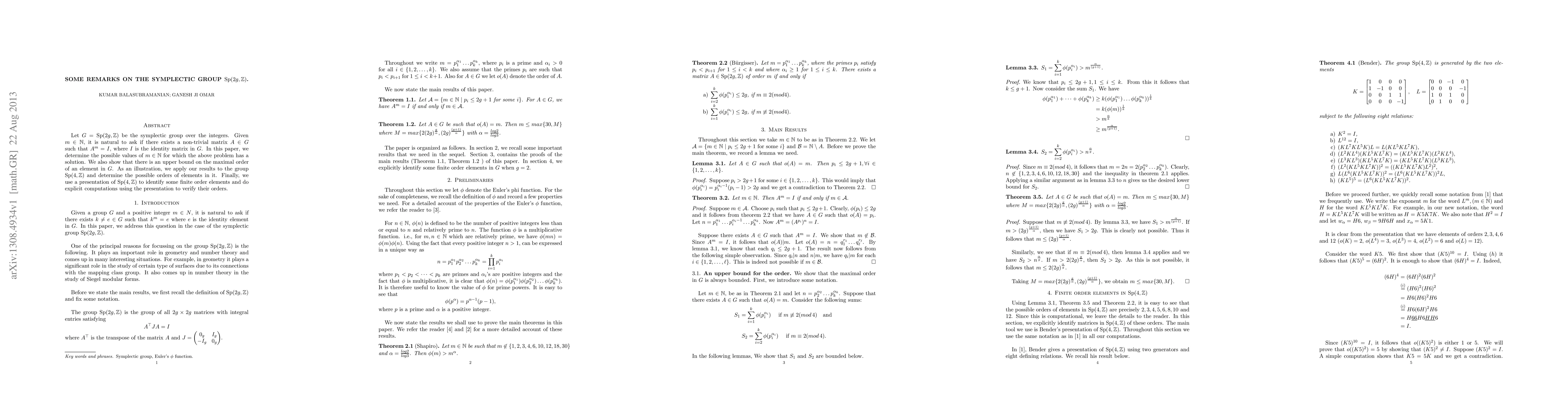Researchers investigate the symplectic group $Sp(2g,b{Z})$ to determine conditions for non-trivial matrices with specific powers, finding an upper bound on maximal element orders and applying results to $b{Z}$-module $ ext{Sp}(4,b{Z})$.