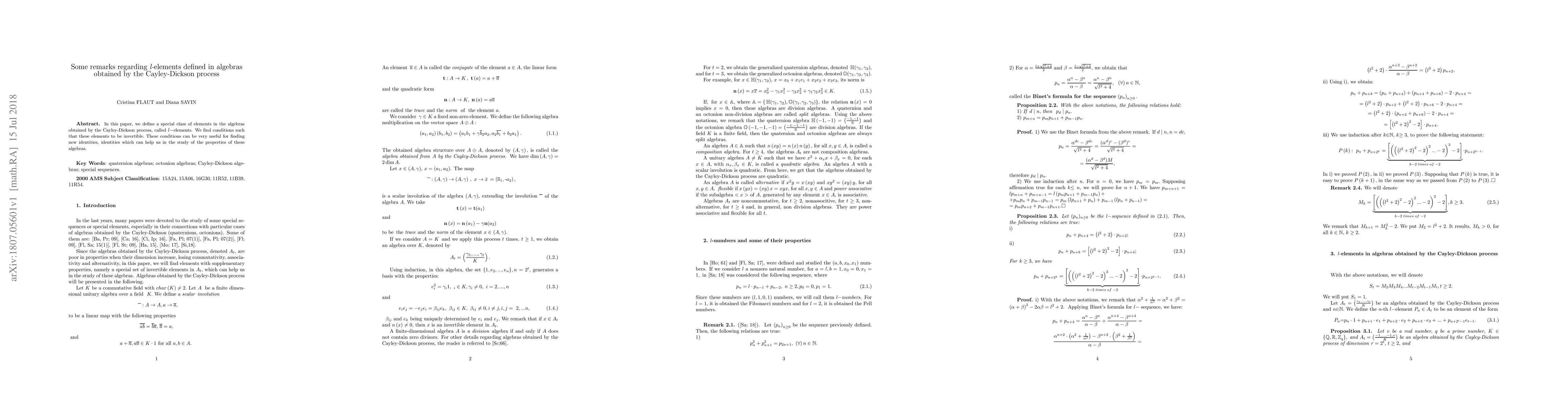 This paper introduces a special class of elements, termed l elements, in algebras generated via the Cayley-Dickson process and determines conditions for their invertibility, which may lead to new identities and insights into the properties of these algebras.