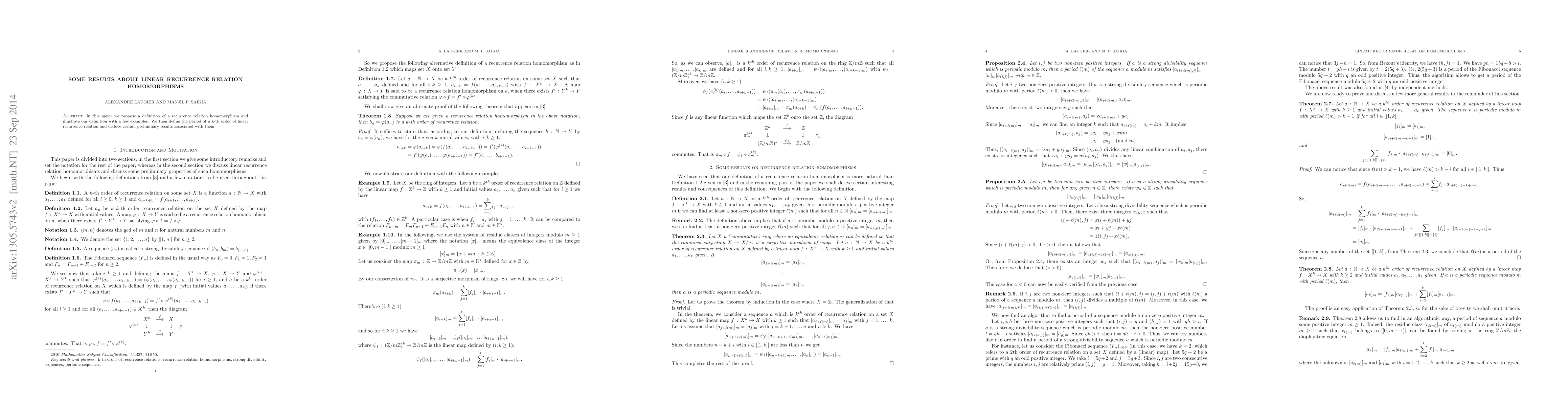 This paper introduces the concept of recurrence relation homomorphisms, provides examples to illustrate the definition, and explores the period of k-th order linear recurrence relations, deriving initial related results.