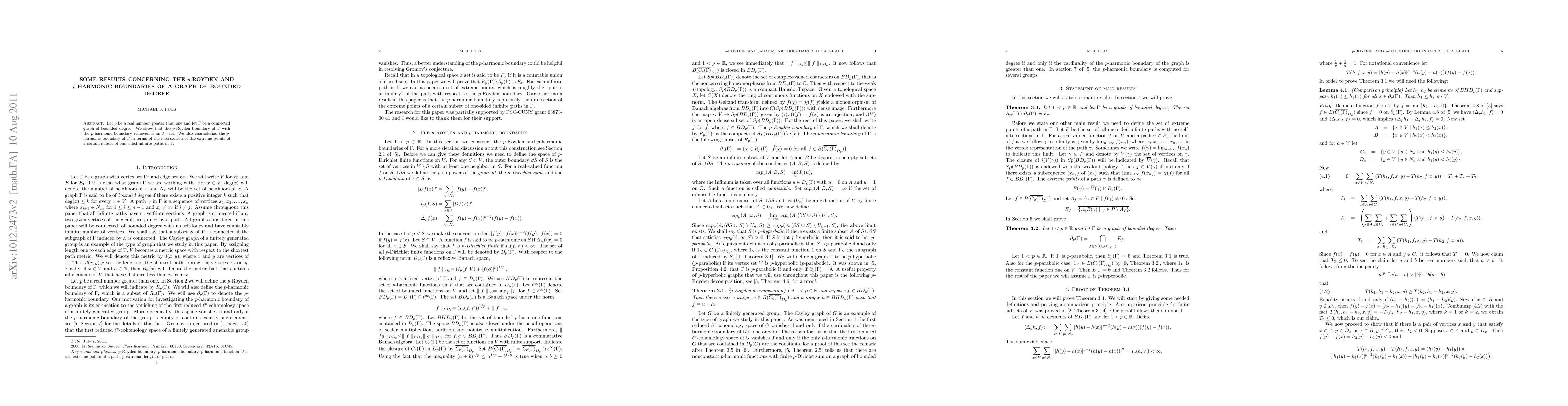 Let $p$ be a real number greater than one and let $\Gamma$ be a connected graph of bounded degree. We show that the $p$-Royden boundary of $\Gamma$ with the $p$-harmonic boundary removed is a $F_{\sigma}$-set. We also characterize the $p$-harmonic boundary of $\Gamma$ in terms of the intersection of the extreme points of a certain subset of one-sided infinite paths in $\Gamma$.