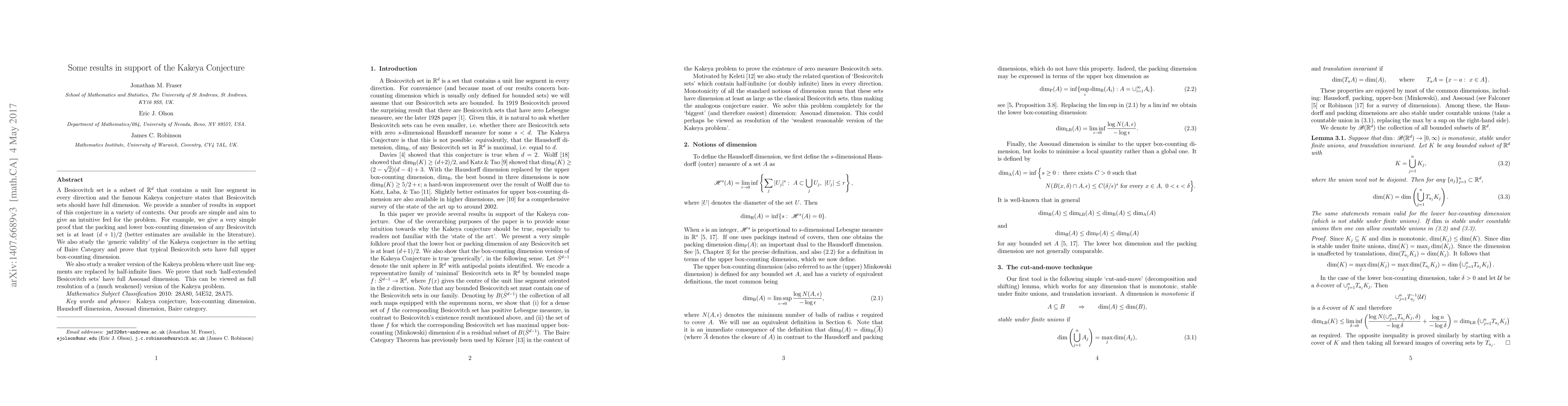 A Besicovitch set is a subset of $\R^d$ that contains a unit line segment in every direction and the famous Kakeya conjecture states that Besicovitch sets should have full dimension. We provide a number of results in support of this conjecture in a variety of contexts. Our proofs are simple and aim to give an intuitive feel for the problem. For example, we give a very simple proof that the packing and lower box-counting dimension of any Besicovitch set is at least $(d+1)/2$ (better estimates are available in the literature). We also study the `generic validity' of the Kakeya conjecture in the setting of Baire Category and prove that typical Besicovitch sets have full upper box-counting dimension. We also study a weaker version of the Kakeya problem where unit line segments are replaced by half-infinite lines. We prove that such `half-extended Besicovitch sets' have full Assouad dimension. This can be viewed as full resolution of a (much weakened) version of the Kakeya problem.