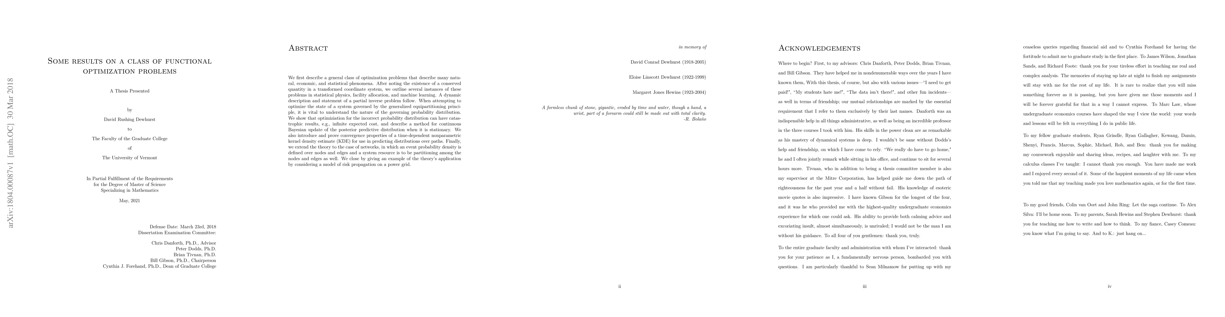 We first describe a general class of optimization problems that describe many natural, economic, and statistical phenomena. After noting the existence of a conserved quantity in a transformed coordinate system, we outline several instances of these problems in statistical physics, facility allocation, and machine learning. A dynamic description and statement of a partial inverse problem follow. When attempting to optimize the state of a system governed by the generalized equipartitioning principle, it is vital to understand the nature of the governing probability distribution. We show that optimiziation for the incorrect probability distribution can have catastrophic results, e.g., infinite expected cost, and describe a method for continuous Bayesian update of the posterior predictive distribution when it is stationary. We also introduce and prove convergence properties of a time-dependent nonparametric kernel density estimate (KDE) for use in predicting distributions over paths. Finally, we extend the theory to the case of networks, in which an event probability density is defined over nodes and edges and a system resource is to be partitioning among the nodes and edges as well. We close by giving an example of the theory's application by considering a model of risk propagation on a power grid.