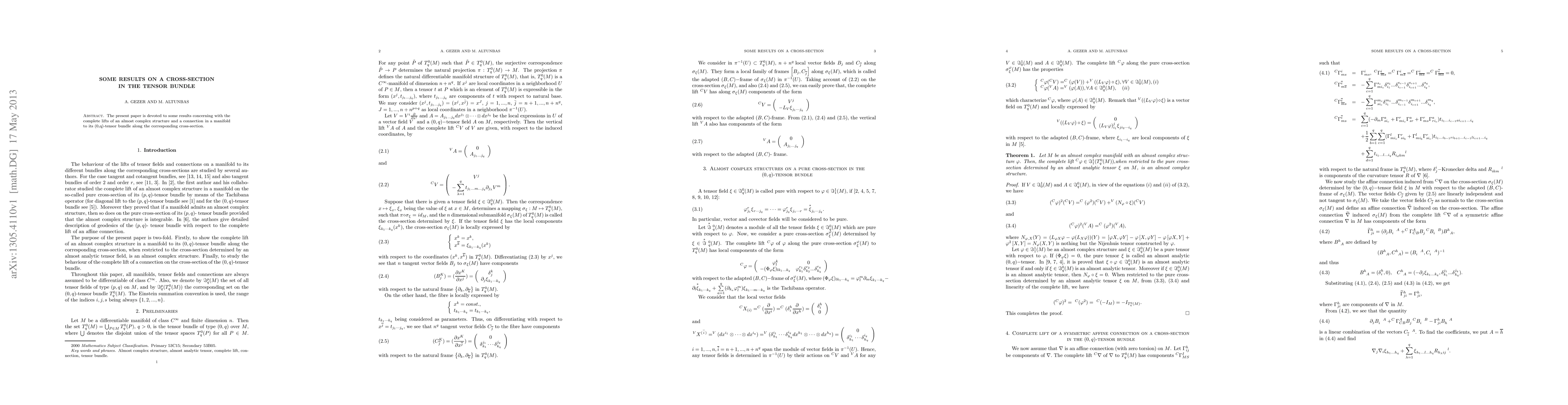 The present paper is devoted to some results concerning with the complete lifts of an almost complex structure and a connection in a manifold to its (0,q)-tensor bundle along the corresponding cross-section.