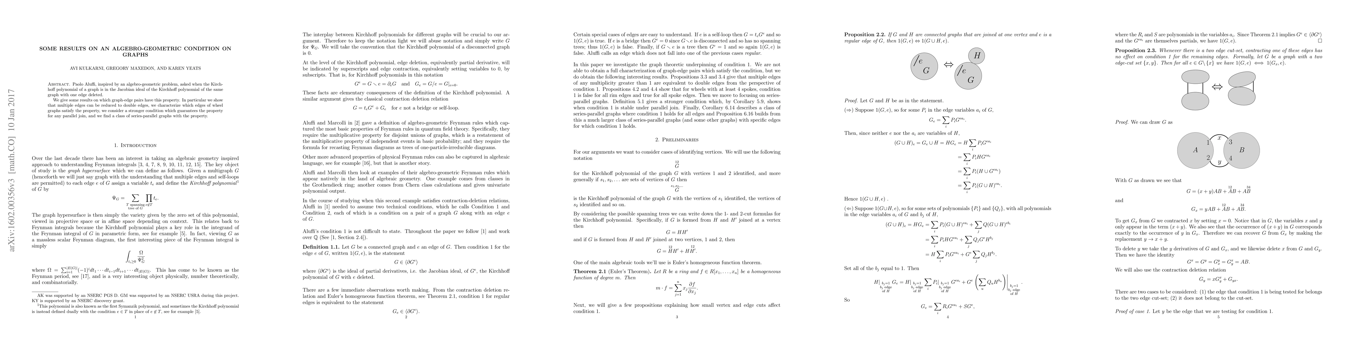Paolo Aluffi, inspired by an algebro-geometric problem, asked when the Kirchhoff polynomial of a graph is in the Jacobian ideal of the Kirchhoff polynomial of the same graph with one edge deleted. We give some results on which graph-edge pairs have this property. In particular we show that multiple edges can be reduced to double edges, we characterize which edges of wheel graphs satisfy the property, we consider a stronger condition which guarantees the property for any parallel join, and we find a class of series-parallel graphs with the property.