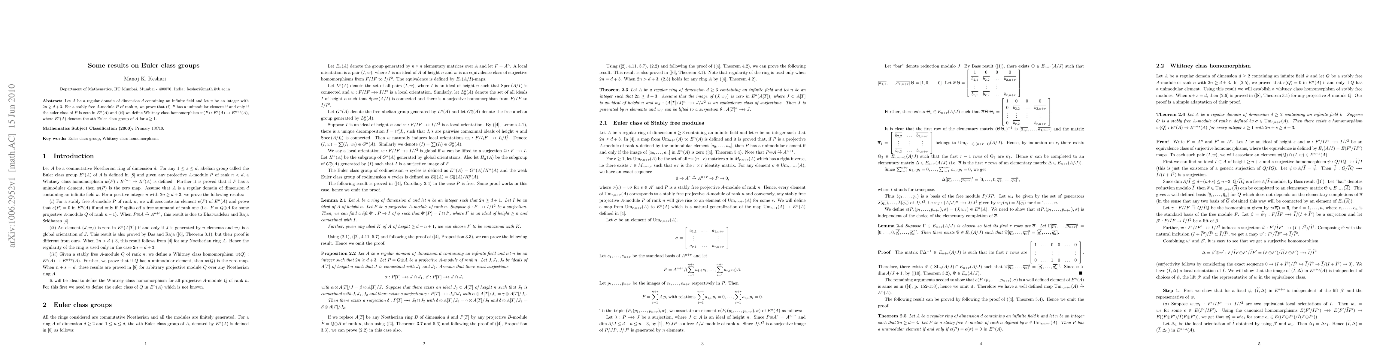 Researchers investigate the relationship between unimodular elements in stably free modules and their Euler class groups, providing a new definition of a Whitney class homomorphism.