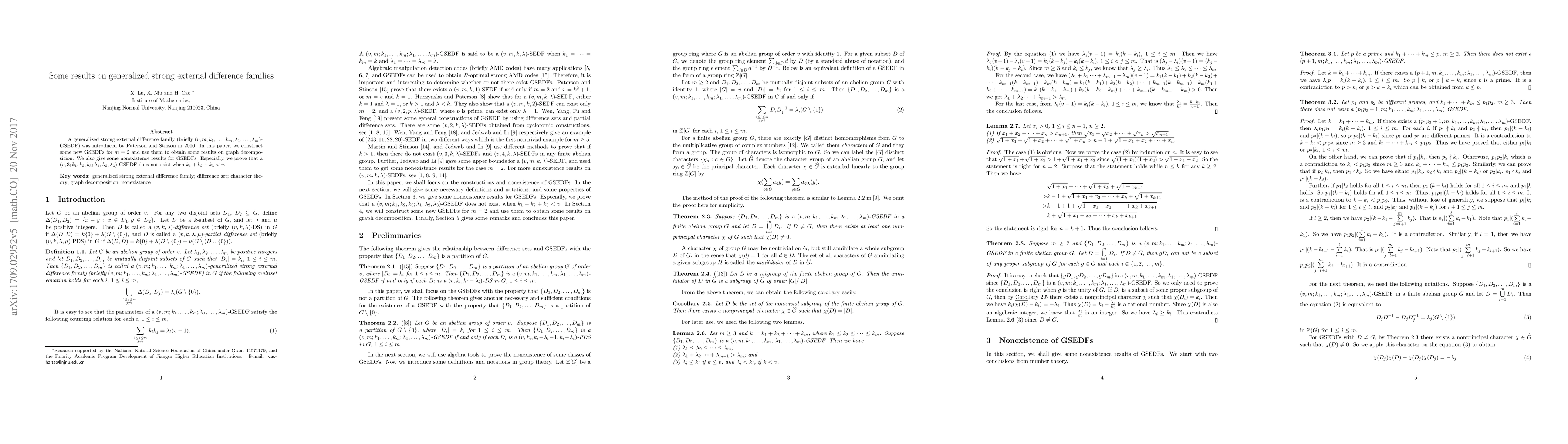 This paper constructs new generalized strong external difference families (GSEDFs) for $m=2$ and uses them to achieve results on graph decomposition, while also proving nonexistence results, specifically showing that a $(v, 3; k_1, k_2, k_3; \lambda_1, \lambda_2, \lambda_3)$-GSEDF does not exist when $k_1 + k_2 + k_3 < v$.