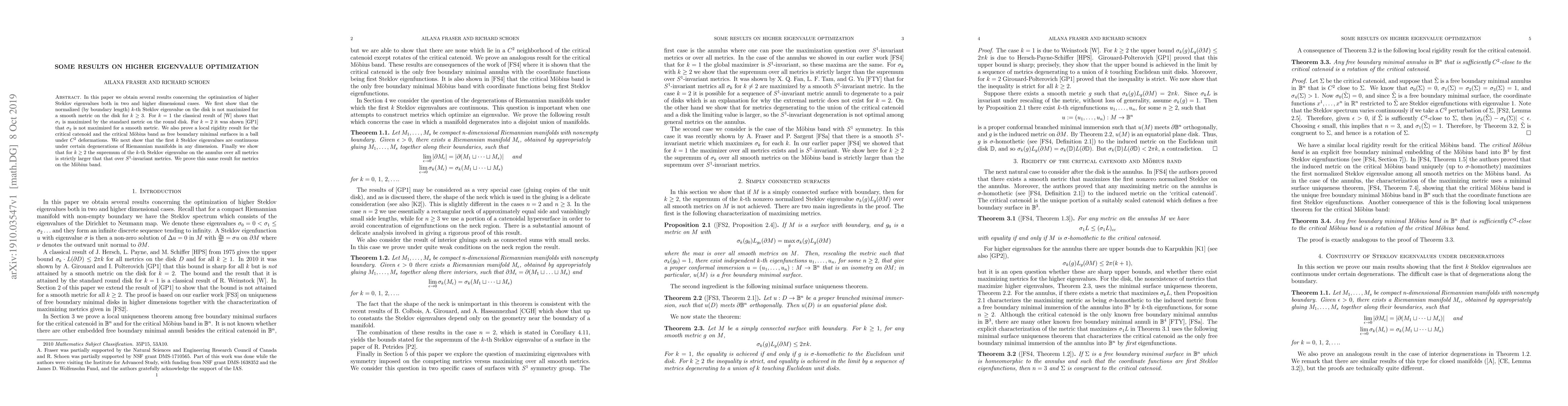 In this paper we obtain several results concerning the optimization of higher Steklov eigenvalues both in two and higher dimensional cases. We first show that the normalized (by boundary length) $k$-th Steklov eigenvalue on the disk is not maximized for a smooth metric on the disk for $k\geq 3$. For $k=1$ the classical result of [W] shows that $\sigma_1$ is maximized by the standard metric on the round disk. For $k=2$ it was shown [GP1] that $\sigma_2$ is not maximized for a smooth metric. We also prove a local rigidity result for the critical catenoid and the critical M\"obius band as free boundary minimal surfaces in a ball under $C^2$ deformations. We next show that the first $k$ Steklov eigenvalues are continuous under certain degenerations of Riemannian manifolds in any dimension. Finally we show that for $k\geq 2$ the supremum of the $k$-th Steklov eigenvalue on the annulus over all metrics is strictly larger that that over $S^1$-invariant metrics. We prove this same result for metrics on the M\"obius band.