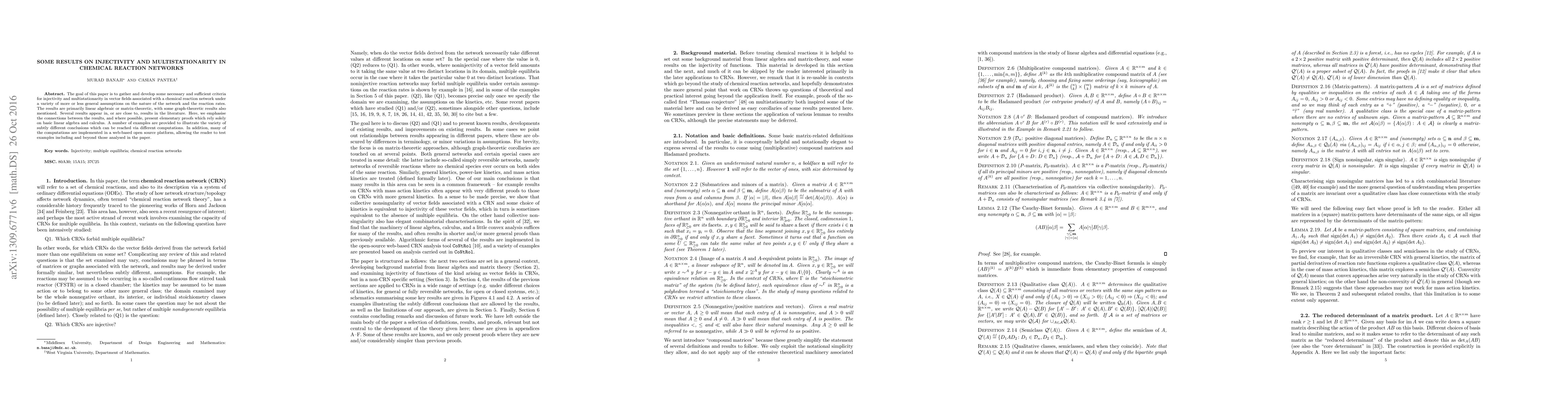 The goal of this paper is to gather and develop some necessary and sufficient criteria for injectivity and multistationarity in vector fields associated with a chemical reaction network under a variety of more or less general assumptions on the nature of the network and the reaction rates. The results are primarily linear algebraic or matrix-theoretic, with some graph-theoretic results also mentioned. Several results appear in, or are close to, results in the literature. Here, we emphasise the connections between the results, and where possible, present elementary proofs which rely solely on basic linear algebra and calculus. A number of examples are provided to illustrate the variety of subtly different conclusions which can be reached via different computations. In addition, many of the computations are implemented in a web-based open source platform, allowing the reader to test examples including and beyond those analysed in the paper.