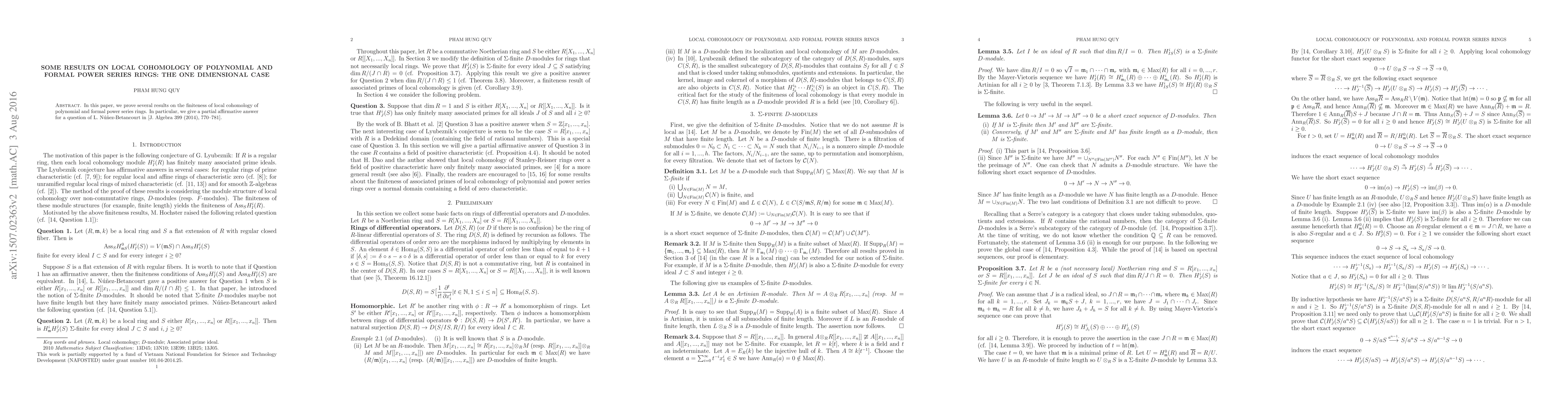 This paper establishes finiteness results for local cohomology in one-dimensional polynomial and formal power series rings, providing a partial solution to a question posed by L. Núñez-Betancourt. It focuses on the specific case of these rings.