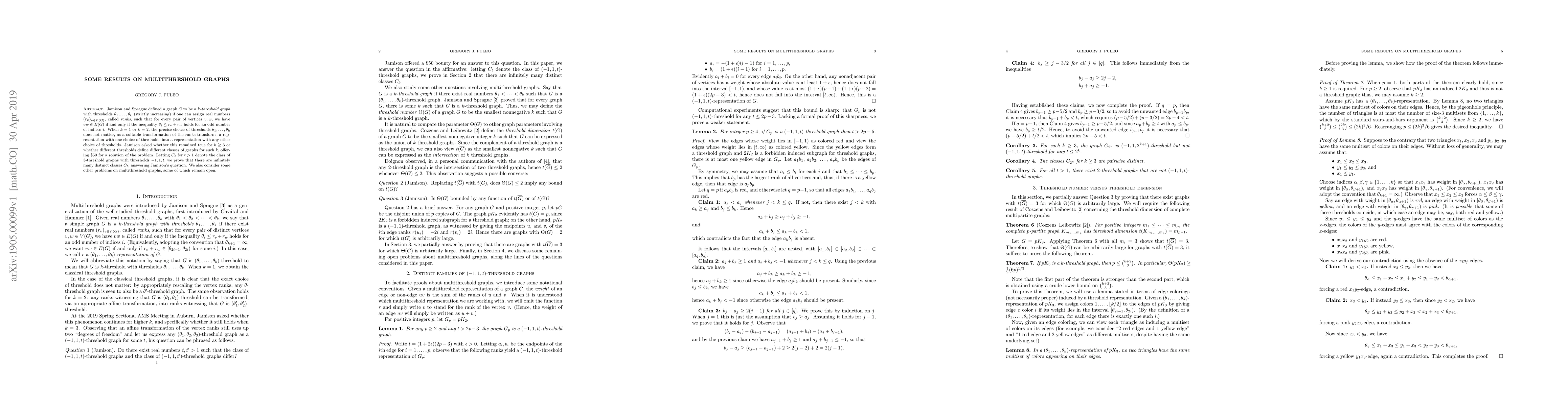 Jamison and Sprague defined a graph $G$ to be a $k$-threshold graph with thresholds $\theta_1 , \ldots, \theta_k$ (strictly increasing) if one can assign real numbers $(r_v)_{v \in V(G)}$, called ranks, such that for every pair of vertices $v,w$, we have $vw \in E(G)$ if and only if the inequality $\theta_i \leq r_v + r_w$ holds for an odd number of indices $i$. When $k=1$ or $k=2$, the precise choice of thresholds $\theta_1, \ldots, \theta_k$ does not matter, as a suitable transformation of the ranks transforms a representation with one choice of thresholds into a representation with any other choice of thresholds. Jamison asked whether this remained true for $k \geq 3$ or whether different thresholds define different classes of graphs for such $k$, offering \$50 for a solution of the problem. Letting $C_t$ for $t > 1$ denote the class of $3$-threshold graphs with thresholds $-1, 1, t$, we prove that there are infinitely many distinct classes $C_t$, answering Jamison's question. We also consider some other problems on multithreshold graphs, some of which remain open.