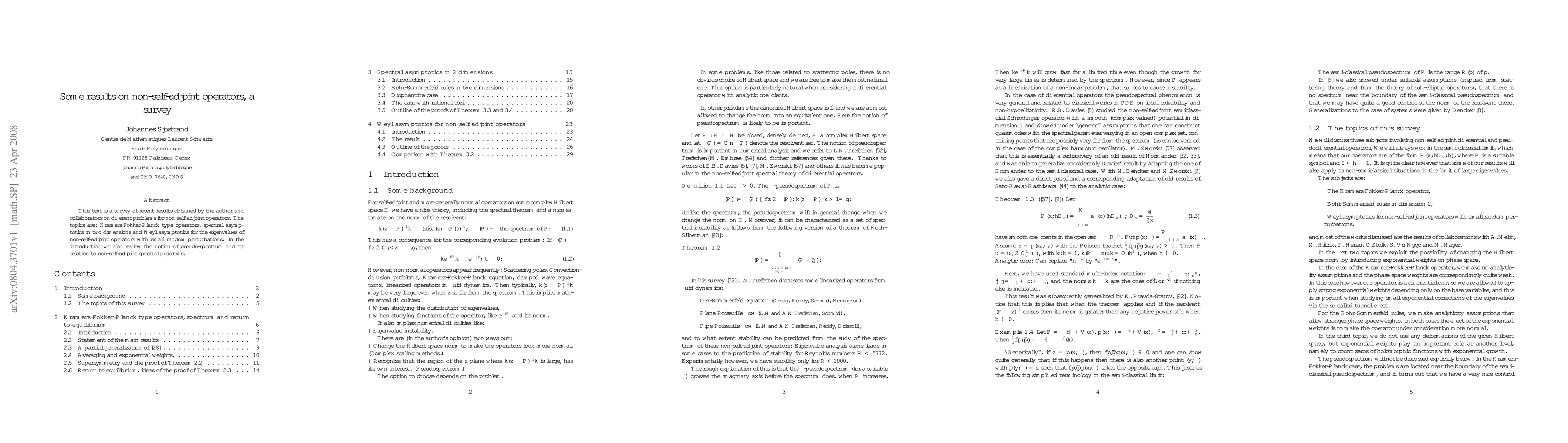 This survey discusses recent findings on non-self-adjoint operators, focusing on Kramers-Fokker-Planck type operators, spectral asymptotics, and Weyl asymptotics for eigenvalues with small random perturbations. It also reviews the concept of pseudo-spectrum in relation to spectral problems.