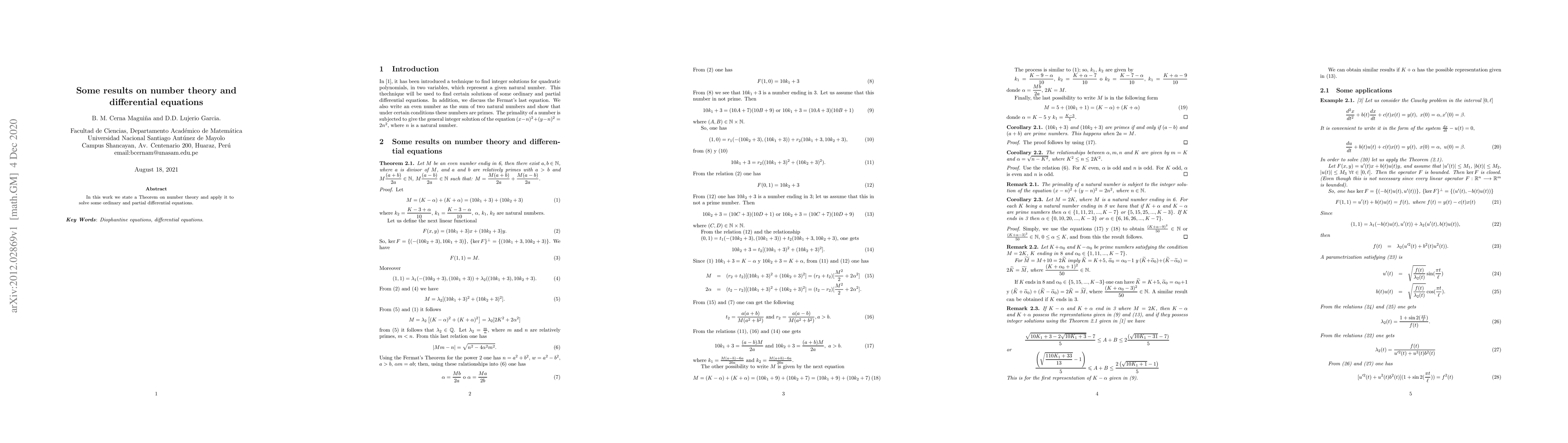 Summary: This paper presents a number theory theorem and demonstrates its application in solving both ordinary and partial differential equations. The theorem aids in finding solutions to these complex differential equations.