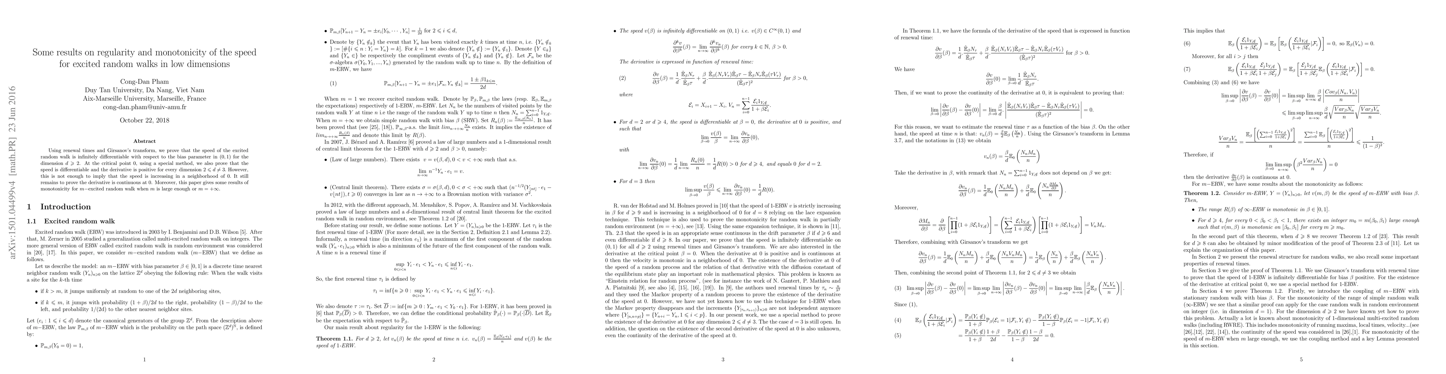Using renewal times and Girsanov's transform, we prove that the speed of the excited random walk is infinitely differentiable with respect to the bias parameter in $(0,1)$ for the dimension $d\ge 2$. At the critical point $0$, using a special method, we also prove that the speed is differentiable and the derivative is positive for every dimension $2\leq d\neq 3.$ However, this is not enough to imply that the speed is increasing in a neighborhood of $0.$ It still remains to prove the derivative is continuous at $0$. Moreover, this paper gives some results of monotonicity for $m-$excited random walk when $m$ is large enough or $m=+\infty.$