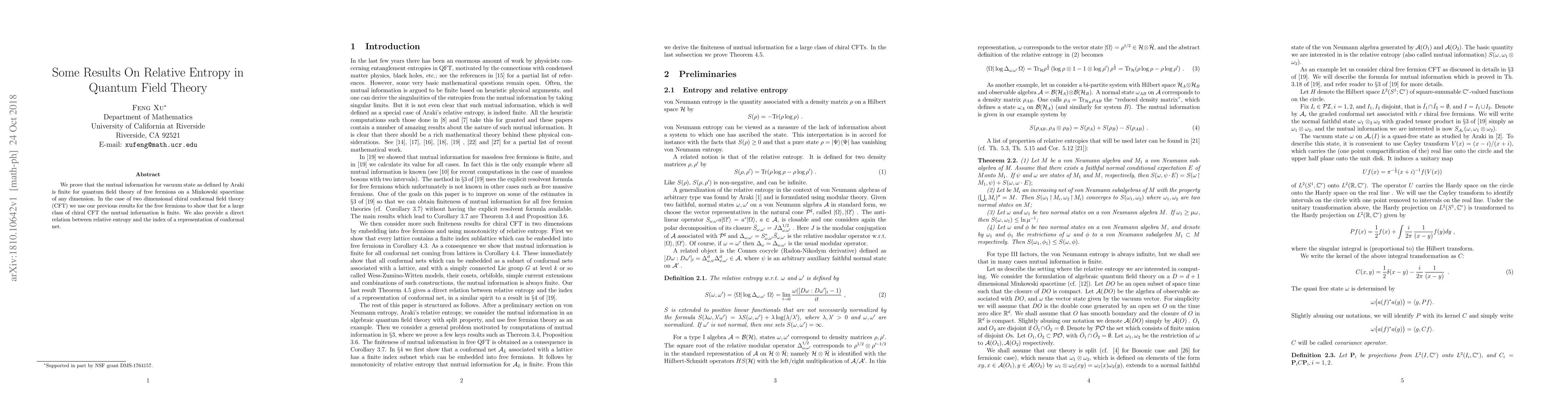 Researchers prove that mutual information for vacuum states in quantum field theory is finite for free fermions on Minkowski spacetime of any dimension, with implications for chiral conformal field theories.