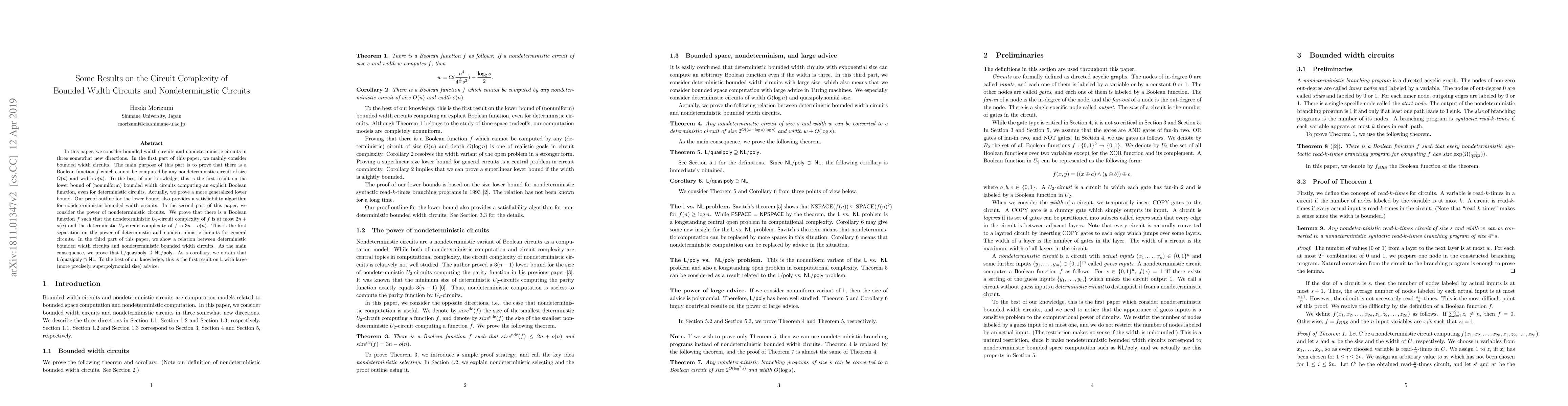 This paper explores the circuit complexity of bounded width and nondeterministic circuits, proving the first lower bound for nonuniform bounded width circuits computing an explicit Boolean function. It also demonstrates the first separation in complexity between deterministic and nondeterministic circuits, and establishes a relationship showing $\mathsf{L/quasipoly} \supseteq \mathsf{NL/poly}$.