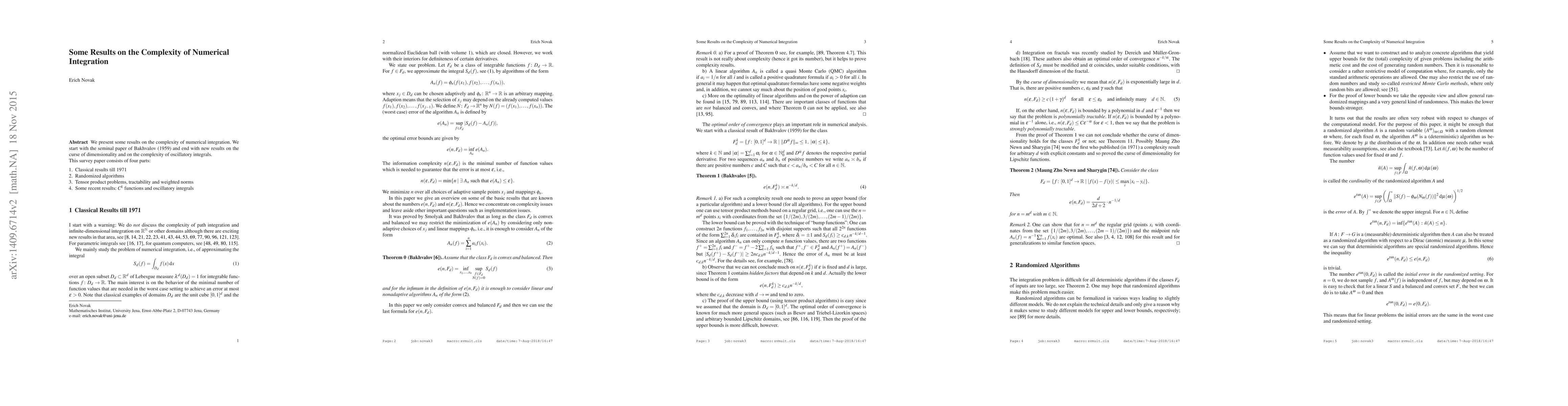 This is a survey (21 pages, 124 references) written for the MCQMC 2014 conference in Leuven, April 2014. We start with the seminal paper of Bakhvalov (1959) and end with new results on the curse of dimension and on the complexity of oscillatory integrals. Some small errors of earlier versions are corrected.