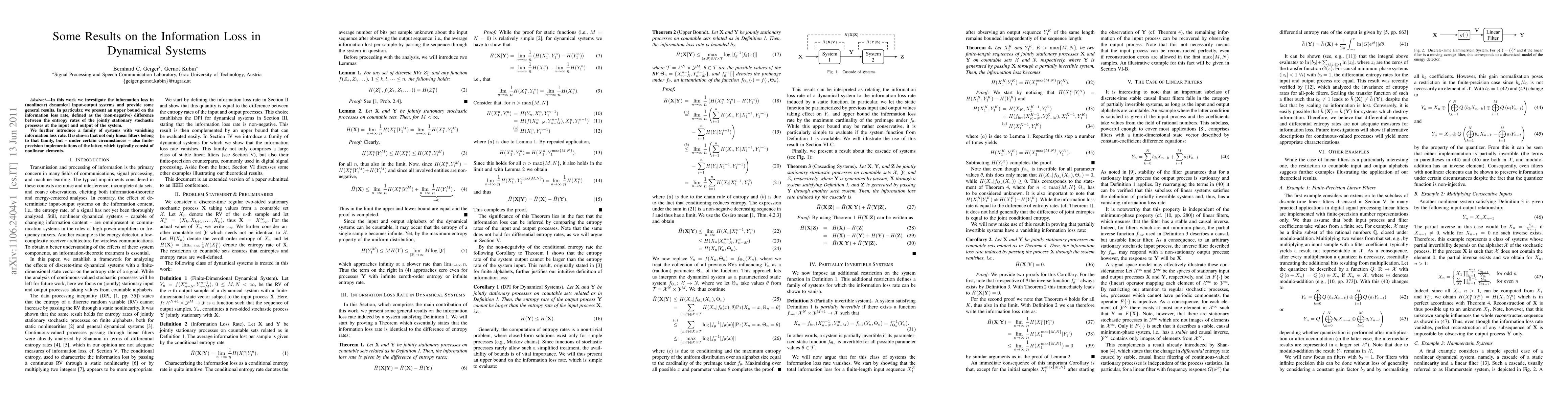 This paper investigates information loss in nonlinear dynamical systems, presenting an upper bound on the information loss rate and introducing a class of systems with vanishing information loss, including linear filters and certain finite-precision implementations.