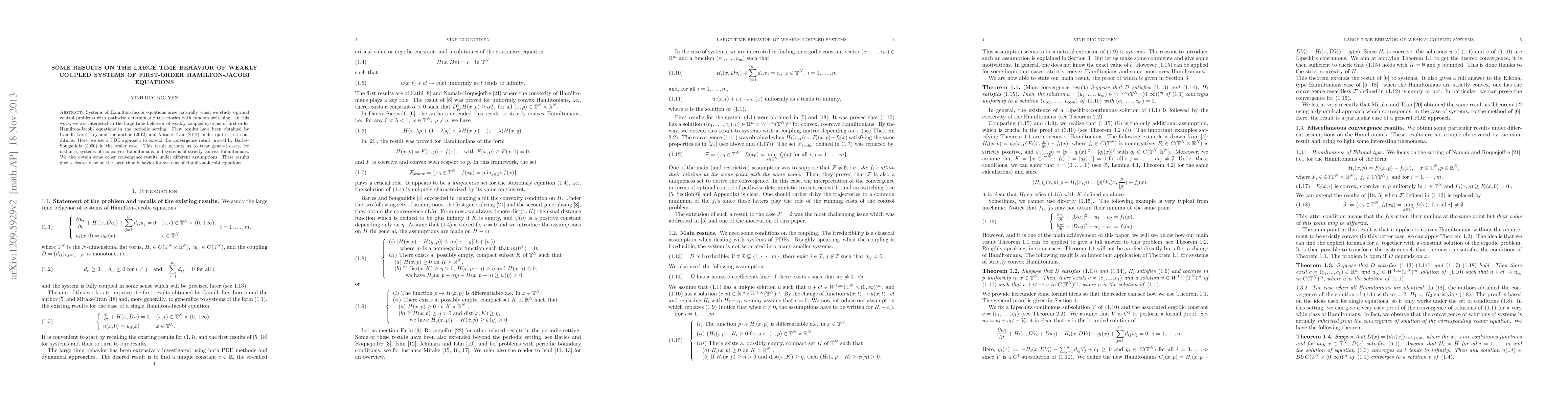 This paper investigates the large time behavior of weakly coupled systems of first-order Hamilton-Jacobi equations using a PDE approach. It extends previous convergence results to more general cases, including nonconvex and strictly convex Hamiltonians, and provides additional insights into the system's behavior under different assumptions.
