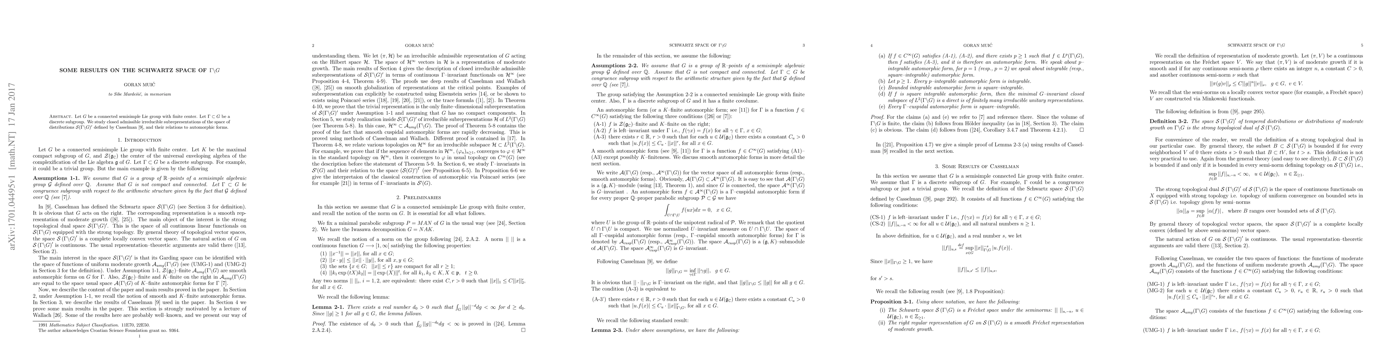 Let $G$ be a connected semisimple Lie group with finite center. Let $\Gamma \subset G$ be a discrete subgroup. We study closed admissible irreducible subrepresentations of the space of distributions $\mathcal S(\Gamma \backslash G)'$ defined by Casselman, and their relations to automorphic forms.